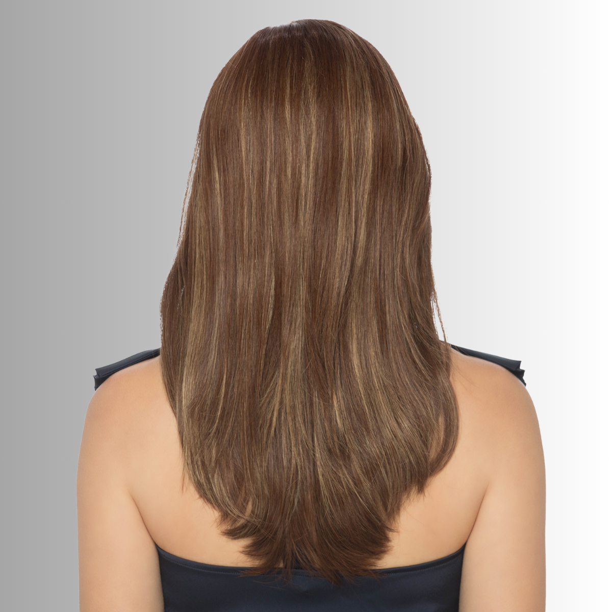 Experience the luxurious quality of Angelina, the most sought after wig in our Remi Human Hair Collection. With luscious layers and a soft, alluring flip at the ends, this style exudes sophistication and elegance. The mono top and machine made back add even more refinement. Complete your look with the perfect finishing touch of side swept bangs.