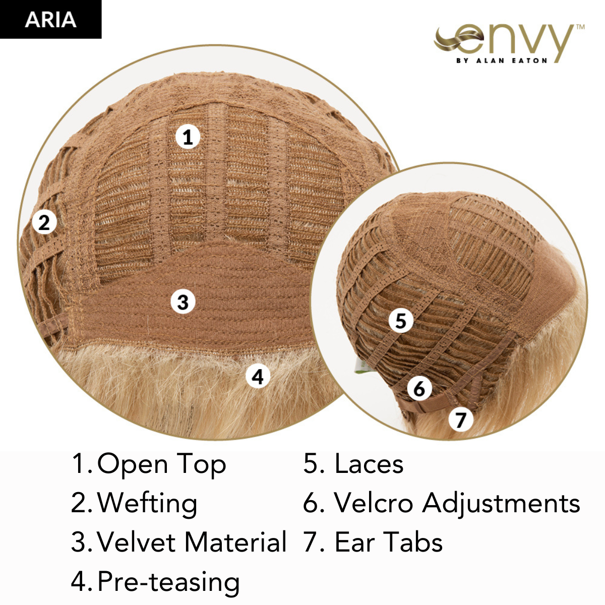 Created with the latest tone-on-tone blending techniques, our exclusive EnvyHair? human/synthetic blend holds its shade, shine, and shape even better than 100% human hair. Combining rakish layering,? wispy bangs AND our lightweight Capless construction¡ªARIA is the perfect go-to wig for stylability and comfort.