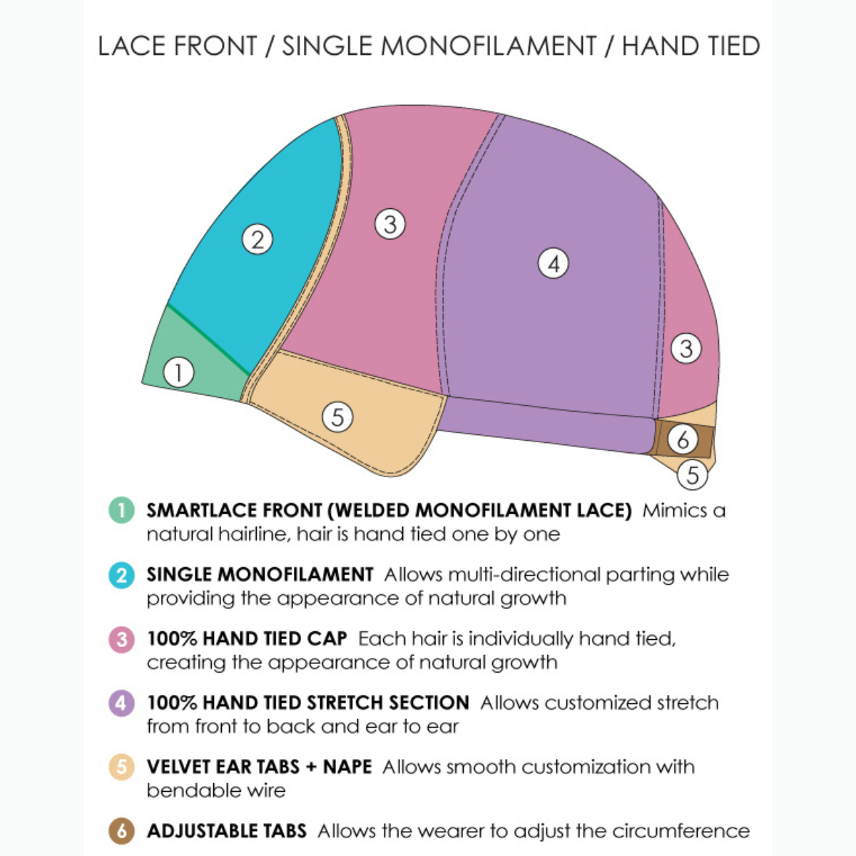 - Cap Design: Extended Lace Front / Single Monofilament / Hand Tied