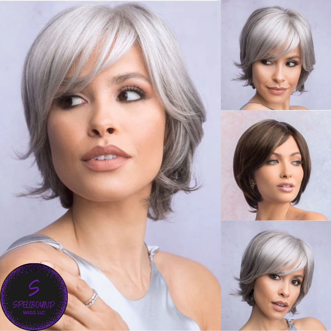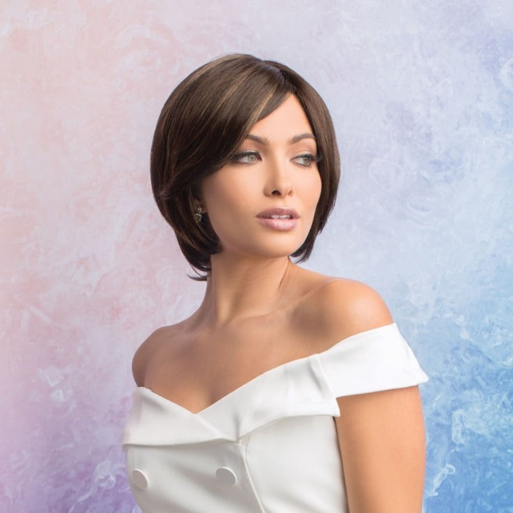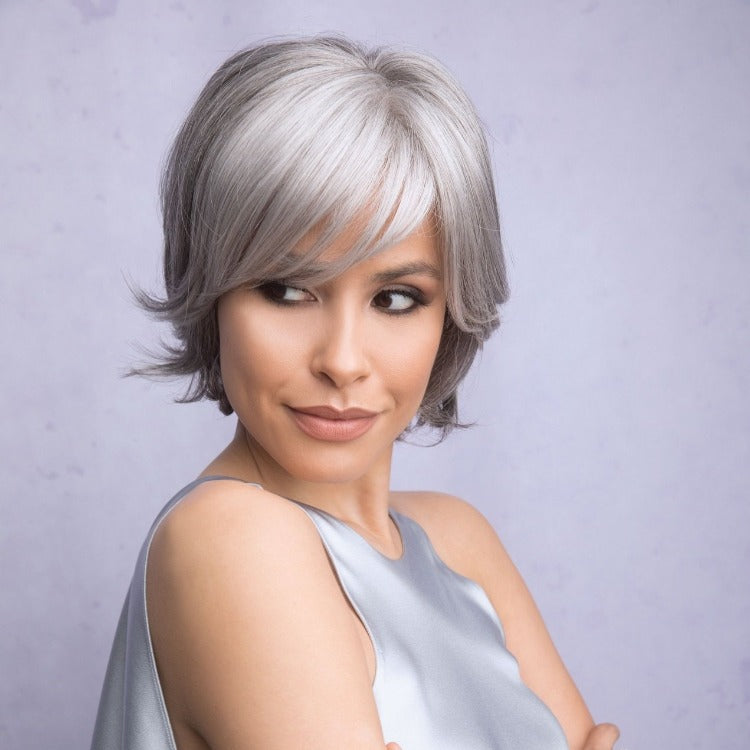 Becky from our Alexander Couture Collection is a short-length synthetic wig. This straight ready-to-wear wig is a very classy and elegant style with side swept fringe and flicks at the nape.