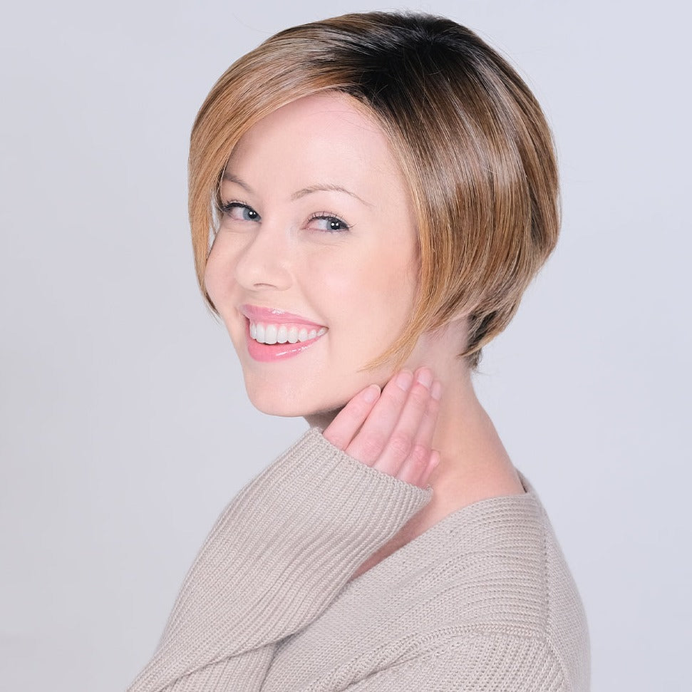 BelleTress Cherry delivers a twist, providing a crossroad look between a short-stacked bob with the longer, textured sides and feminine boy cut. The partial mono top with temple-to temple lace front offers the option of creating an off-the-face look or soft-swept side bang. One of the most beloved cuts of Hollywood stars!
