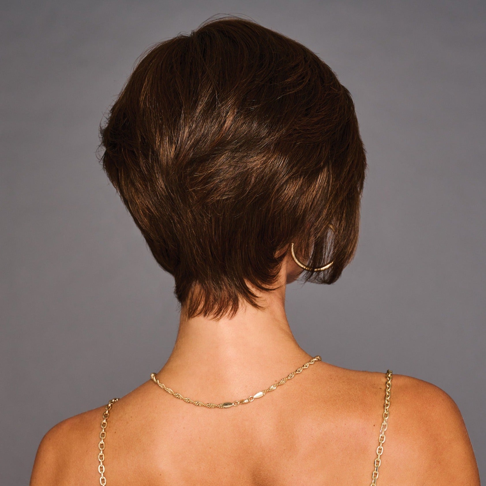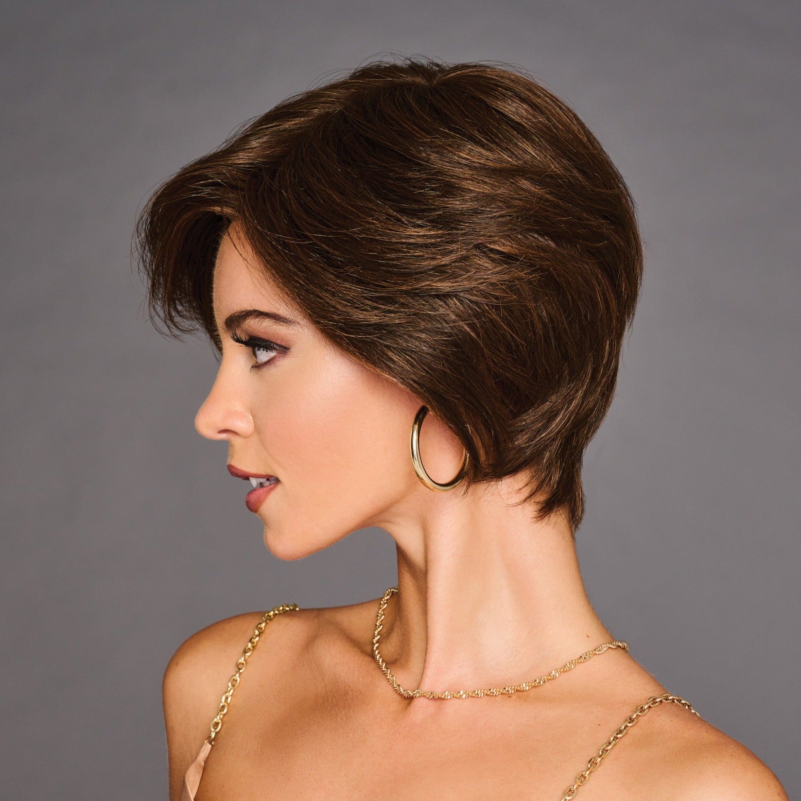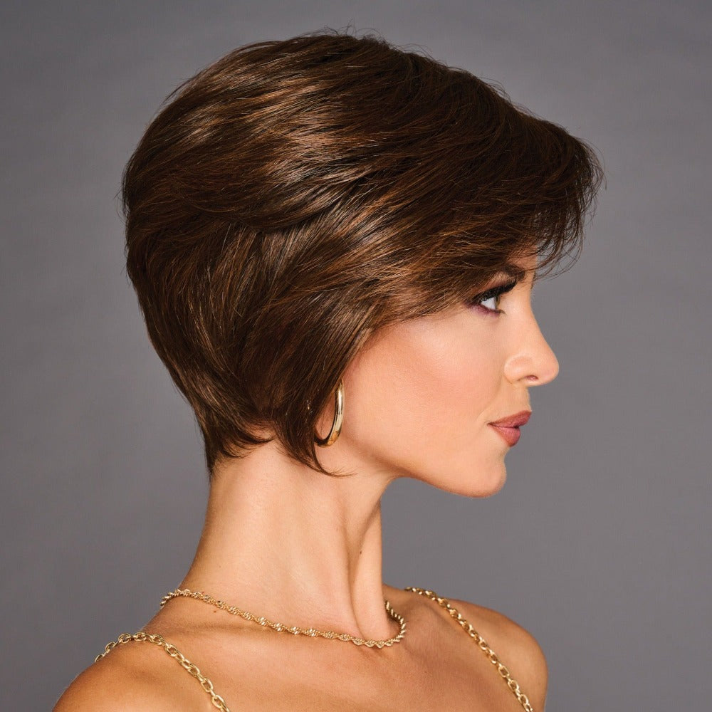Now, this is a style! Sophisticated. Sleek. Salon-inspired. The structured shape has a graduated back, volume in the crown, and a soft fringe with longer face-framing pieces. Wear the fringe onto the face or up and away. Its boyish, gamine charm adds a distinctly mischievous personality to this fresh, short cut.