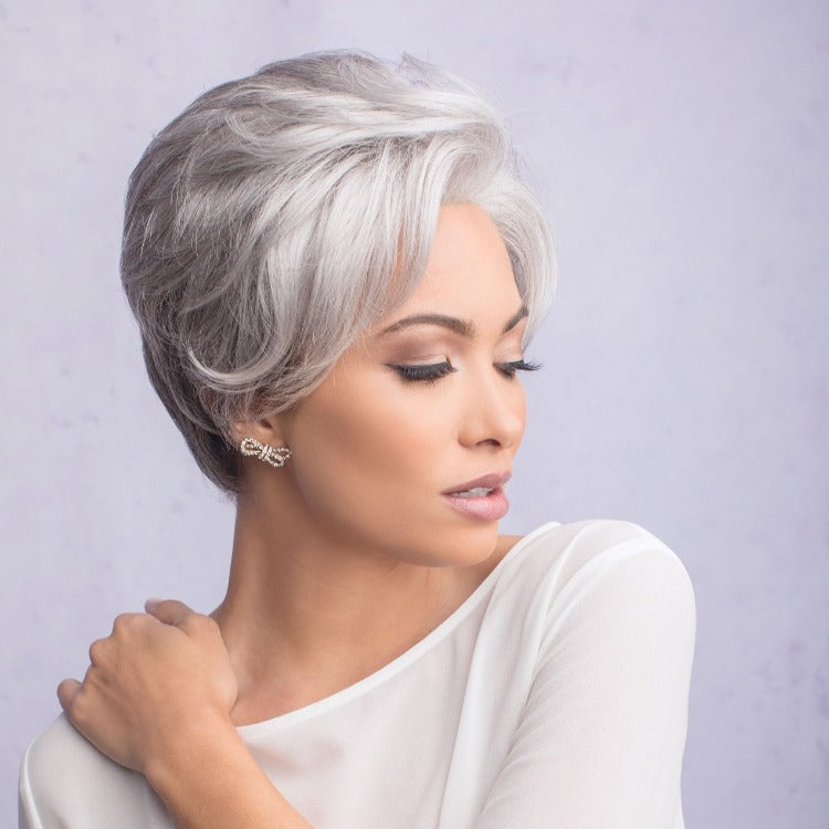 Bethany from our Alexander Couture Collection is a short-length synthetic wig. This straight ready-to-wear wig is a voluminus brushed up pixie with a blowout texture. This style will give you a sleek and classy look. This trendy wig has a new lace front.