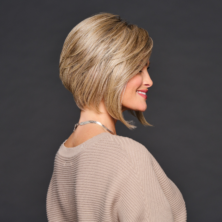 Get ready to swoon over this edgy, A-line look. Salon-precise tapered sides blend with a dramatic side-swept fringe. The shattered layers and lightweight construction create natural movement.