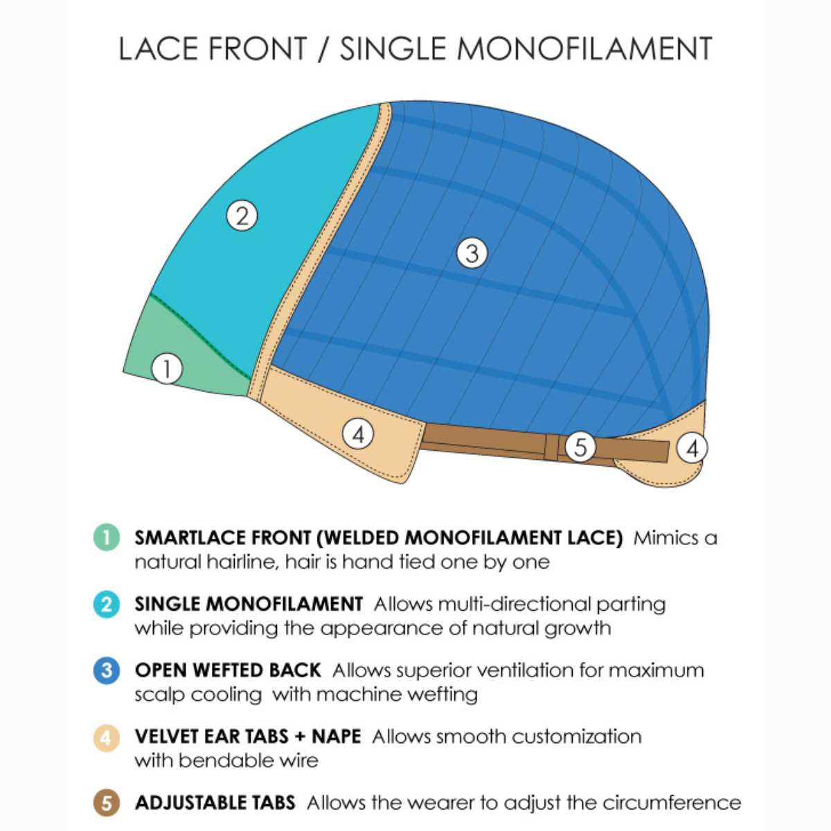 - Dimensions: Bang 7.5" / Crown 11.75" / Side 10"/ Nape 12.5"