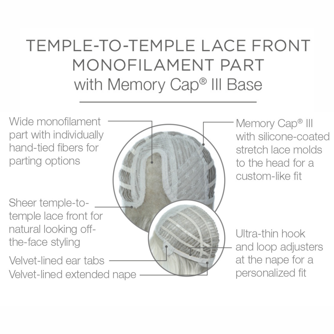 - Memory Cap? III Base / Temple to Temple Lace Front / Monofilament Part / Velvet Lined Ear Tabs and Nape