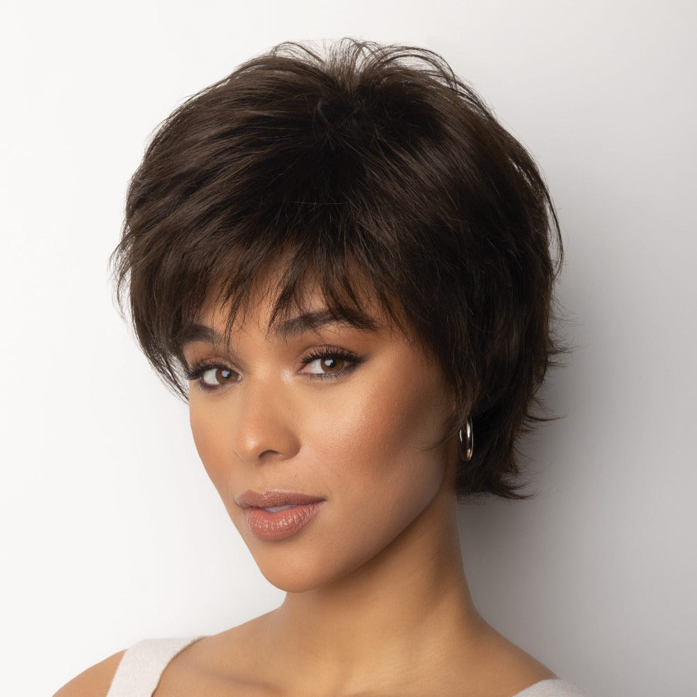 Coco from our Rene of Paris Hi-Fashion Collection is a short-length synthetic wig. This straight ready-to-wear wig is a carefree style with charming textures giving you that extra charm. Coco is machine made with adjustable tabs in the back nape area to allow a more comfortable fit. The result is a comfortable fit with a natural look that is both fashionable and easy to wear.