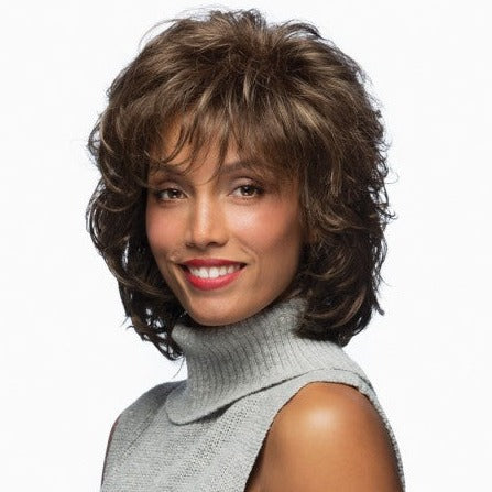 Compliment is a very flattering style with beautiful wavy layers and fullness throughout. Wear the bangs forward or sweep them to the side, either way you've got a look of perfection.