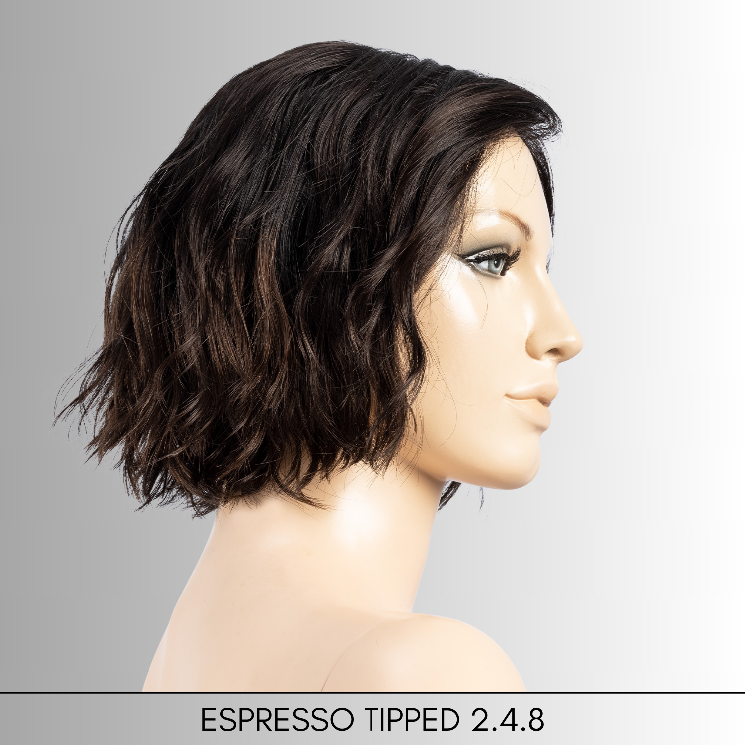 Get ready to step out in this fashion-forward style. Dance by Ellen Wille is cool and lightweight with a monofilament part over the left eye. The relaxed beach-like waves give this bob a fun and fresh look for any occasion. You'll love the longer front fringe and the impeccable extended lace front which allows styling versatility.