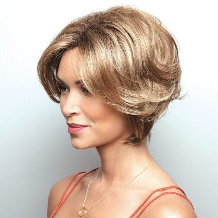 Dolce from our Noriko Collection is a short-length synthetic wig. This straight ready-to-wear wig is chic flirty bob style with voluminous wavy layers that softly graduate to the chin.? Dolce is machine made with adjustable tabs in the back nape area to allow a more comfortable fit. The result is a comfortable fit with a natural look that is both fashionable and easy to wear.