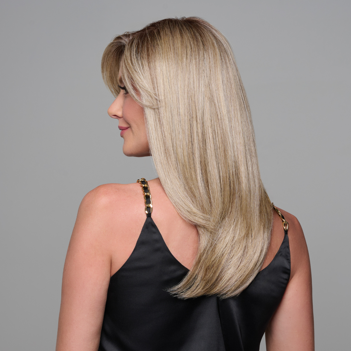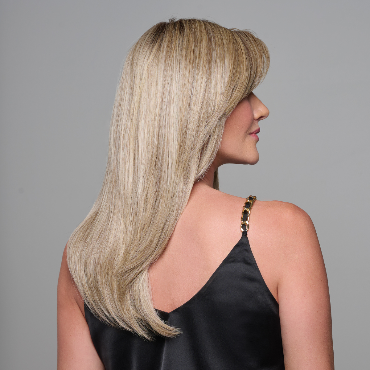 Banish the blow dryer and flat iron routine in favor of effortless styling. Long, feather-cut layers and lightweight natural volume give this glam girl hair beautiful movement. Soft face-framing bangs can worn swept away or onto the face.