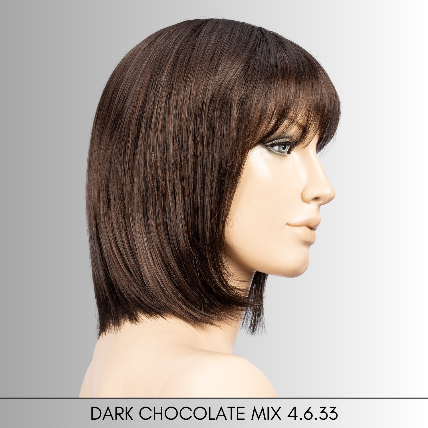 Change by Ellen Wille is a short, trendy, and softly angled cut wig. The hair and bangs are cut to create the classic bob hairstyle. The layers extend below the chin and have fullness at the root to add volume with movement. The monofilament crown is located behind the bang and gives a scalp-like appearance. If needed, the wispy bang can be trimmed to fit your face shape. Change is a part of the Ellen Wille Perucci collection.