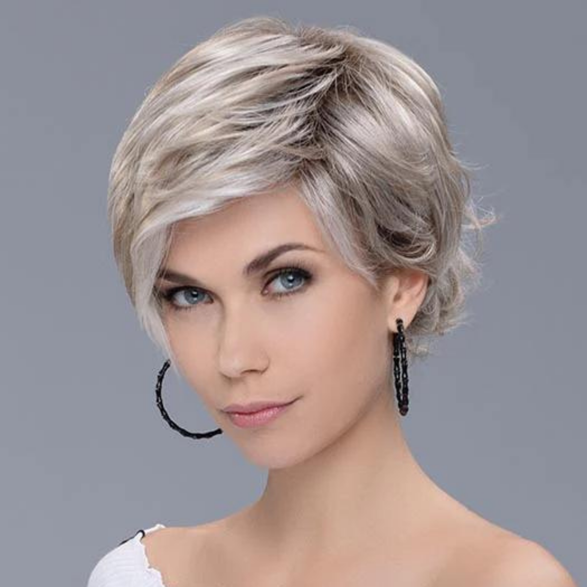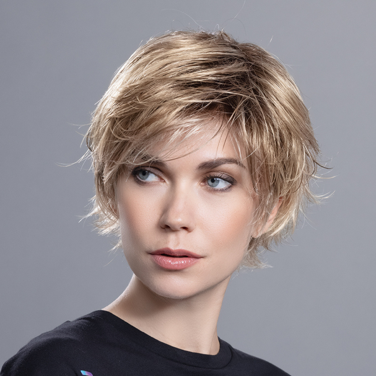 Raise by Ellen Wille is a part of the legendary Changes Collection. It's a trendy, playful shag cut with flipped out layers. Use the Beautimark shaping cream to piece out the hair or create a stronger hold. The natural lace front hairline is complemented with softly textured bangs and can be swept to the side. With perfect cut layers and a no fuss style, you can call this a shake and go piece. No worries, your hair will look great from every angle.??