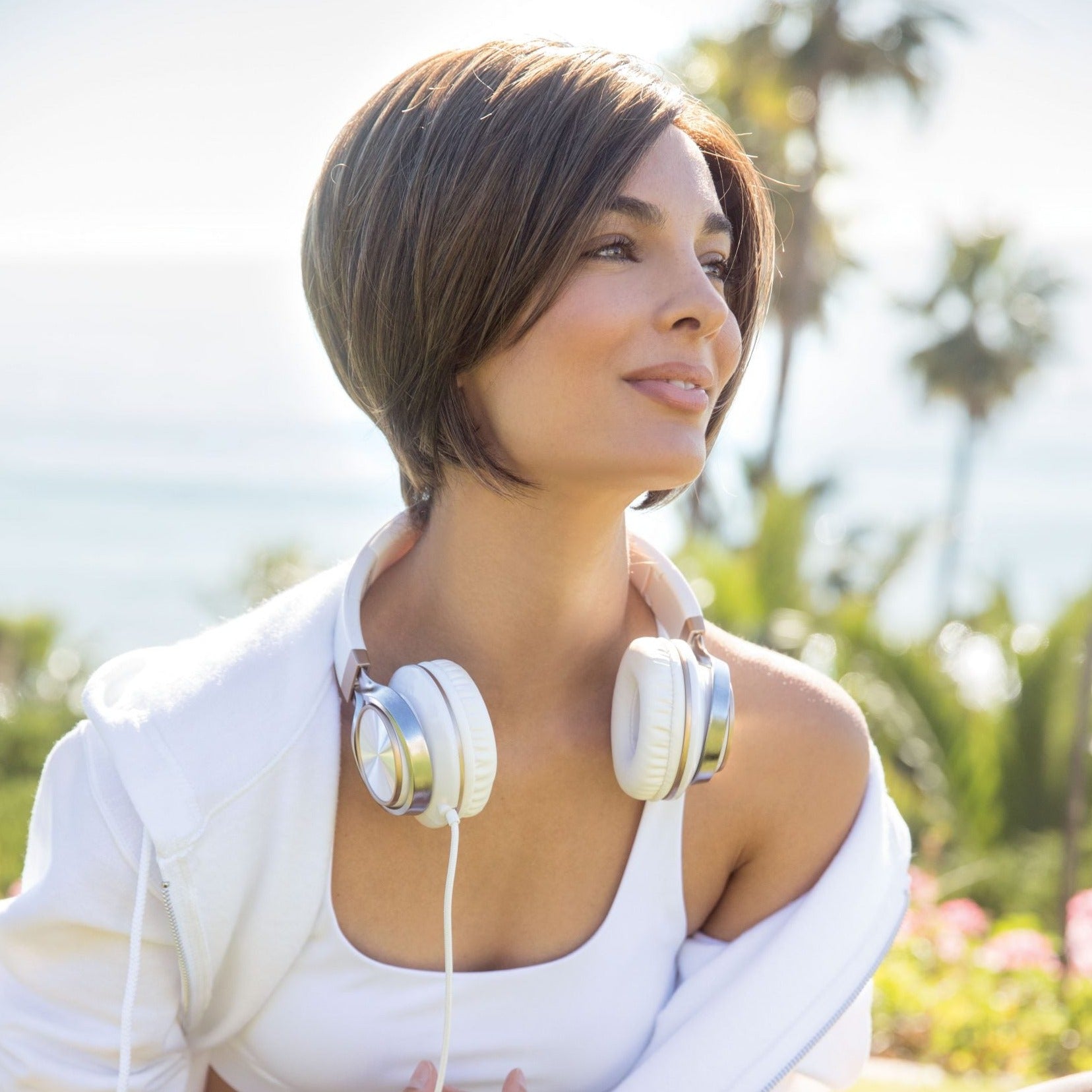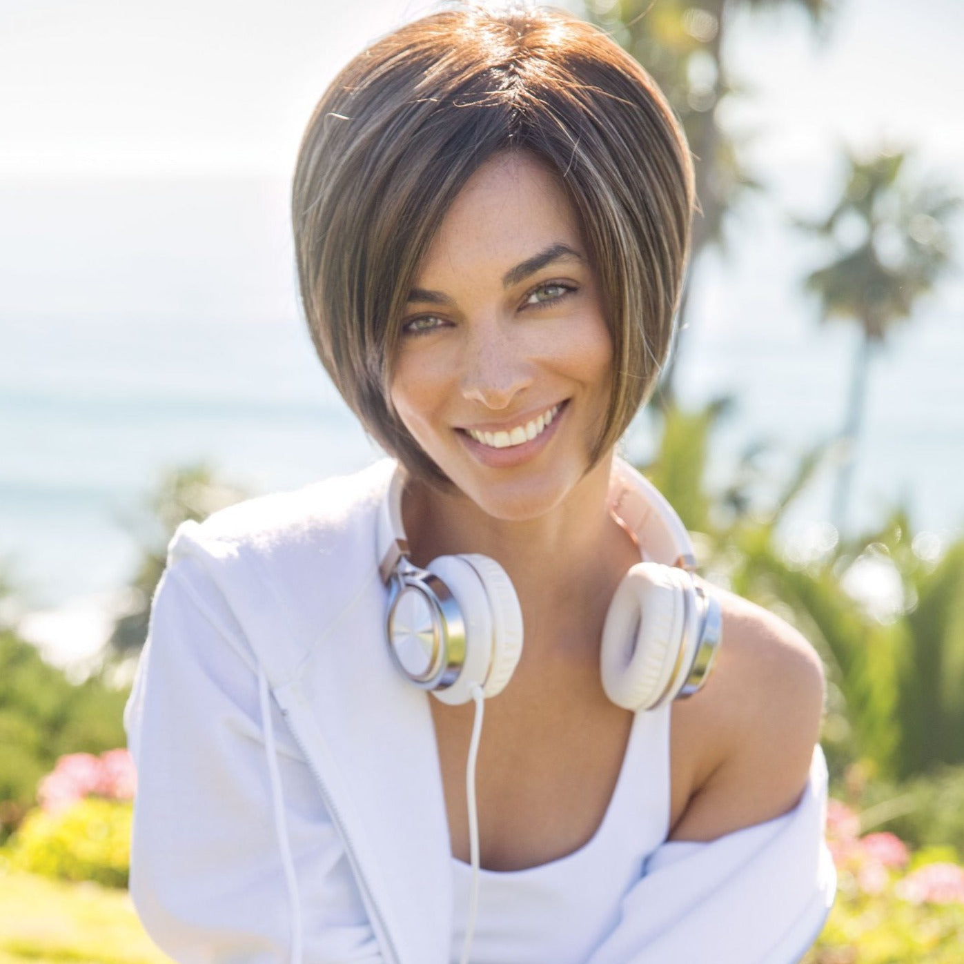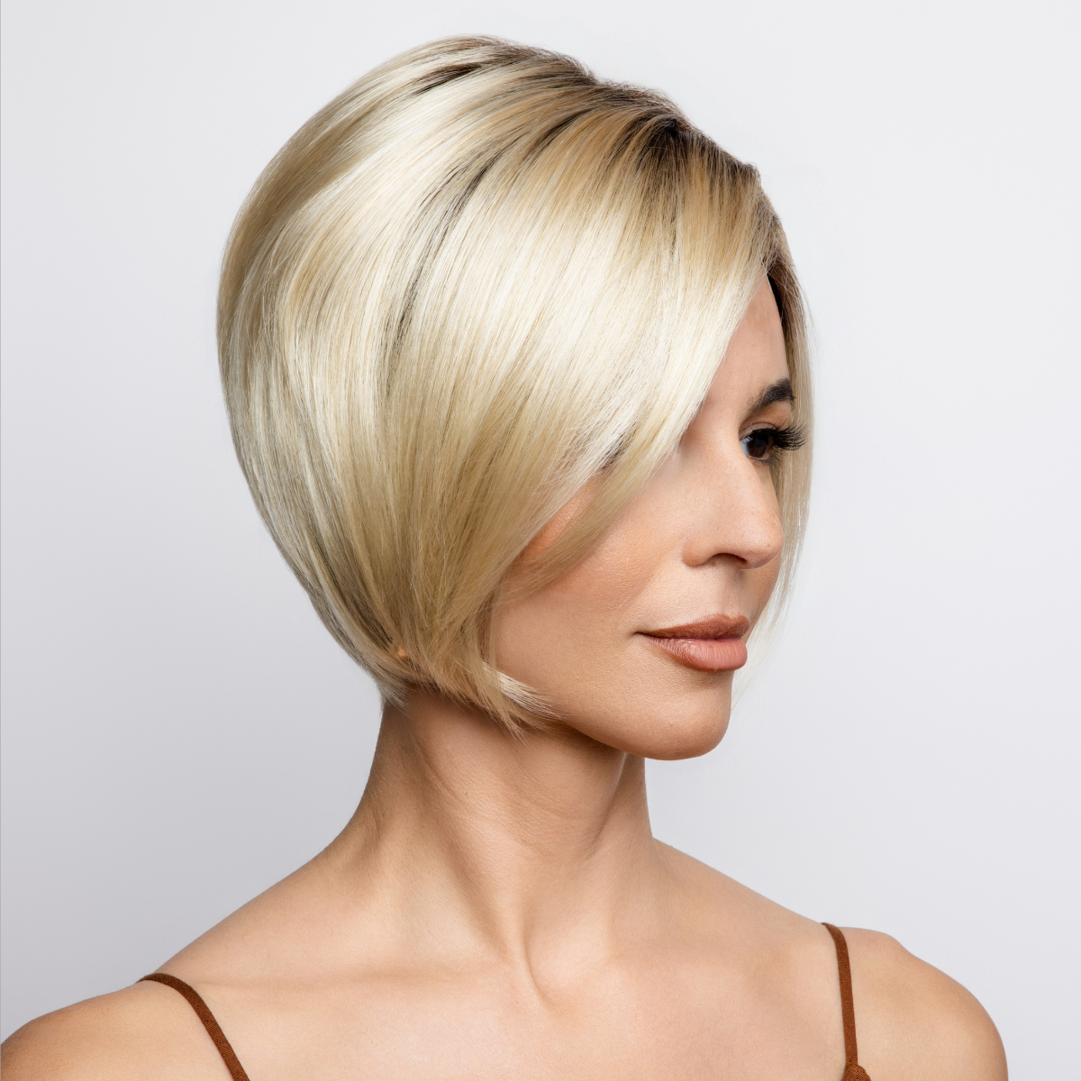 Emy from our Amore Collection is a short synthetic wig. This straight ready-to-wear wig is a short, angle bob. Volume can be added to the crown area to fit your face shape and for your daily wear look. Our Emy cap construction is Double Monofilament and lace front. The lace front is a hairline fusion technology with minimal lace front for a natural look. Its Double Monofilament cap construction is combined with calibrated machine wefting along the sides and back. Emy cap includes polyurethane tape tabs along the front and adjustable tabs in the back neck area, to allow for comfortable fit. The result is a comfortable fit with a natural look that is both fashionable and easy to wear.
