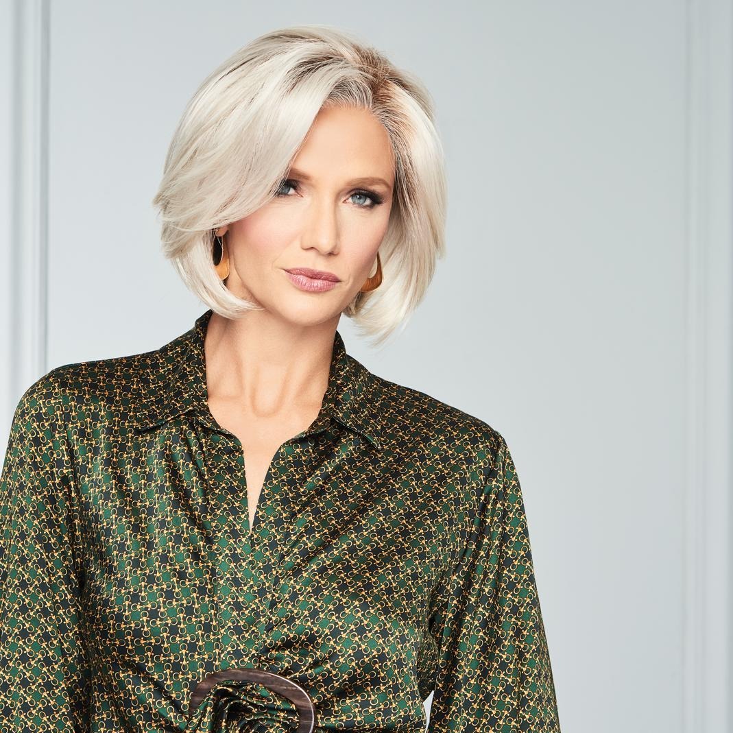 This softly waved chin length cut gives the classic bob a new twist. With a sheer lace front and Hand-tied top for varied styling options, the layered texture throughout allows for natural movement, and the beautifully tapered lengths make this a light, timeless classic.