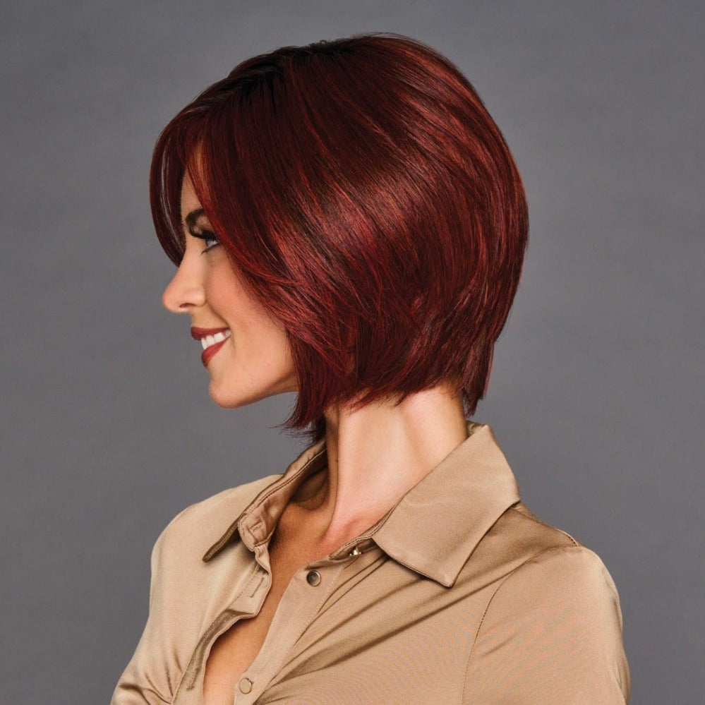 Never say never and always say glamour! This softly structured, sophisticated bob has volume in the crown and longer face-framing layers that can be tucked behind ears or worn on onto the face. Its dramatic shape of multi-textured, shattered ends with a side-swept eyelash bang is easily styled, effortlessly elegant.