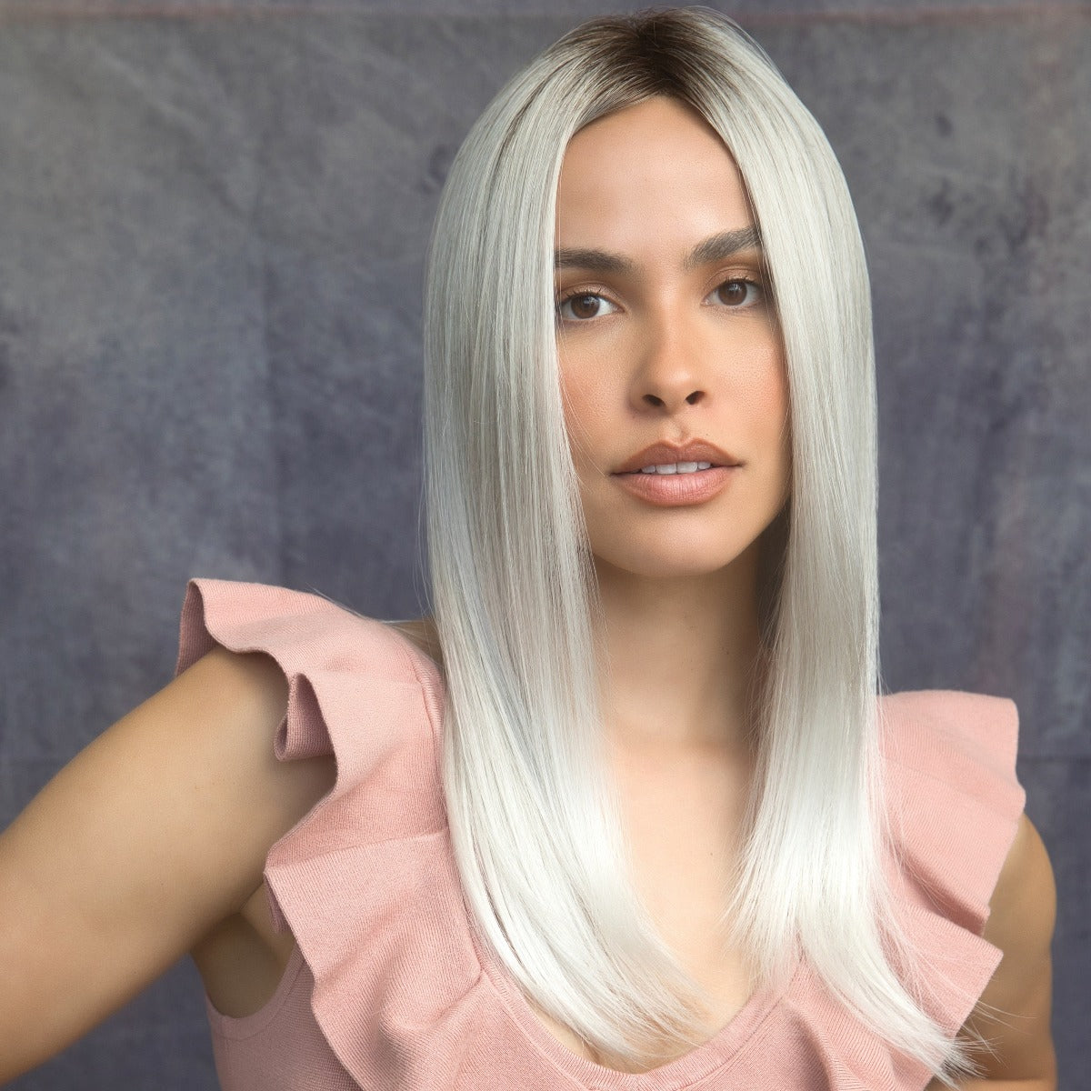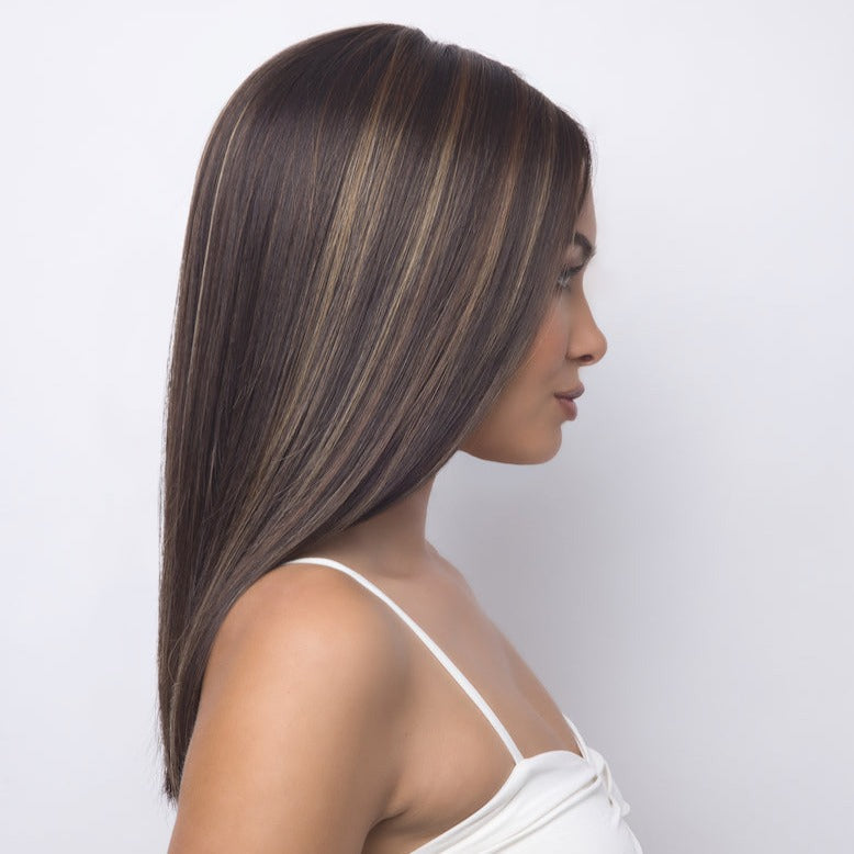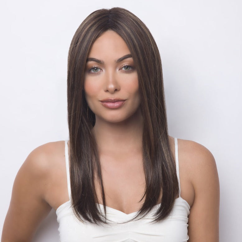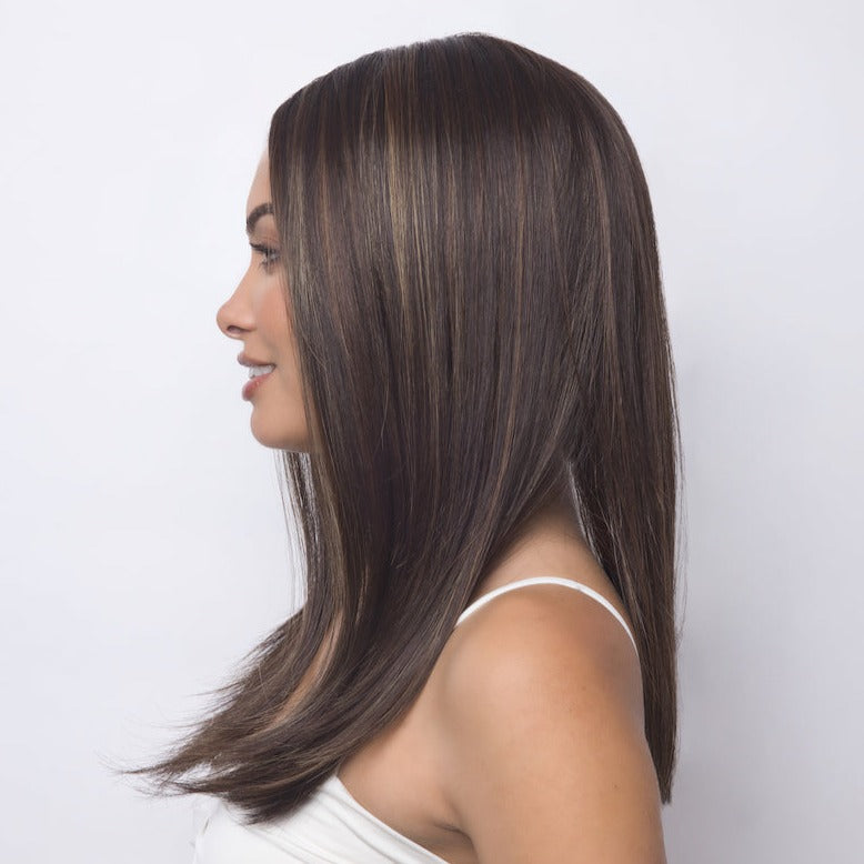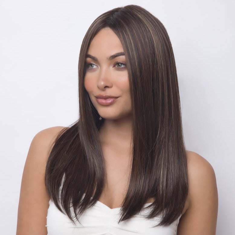 Harper from our Alexander Couture Collection is a long-length synthetic wig. This straight ready-to-wear wig is a long layered wig giving the wig movement and flow. If you are looking for both sleek and chic this is the wig for you. This trendy wig is lace front and lace part. Its lace front will give you a natural look with the lace part cap.