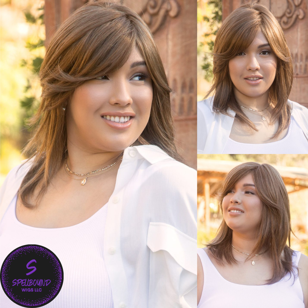 Hayden from our Amore Collection is a mid-length synthetic wig. This wavy ready-to-wear wig creates natural movement with its versatile medium length layers. Its Double Monofilament cap construction is combined with calibrated machine wefting along the sides and back. Hayden隆炉s cap includes polyurethane tape tabs along the front and adjustable tabs at the nape to allow for a personalized fit. The result is a comfortable fit with a natural look that is both fashionable and easy to wear.