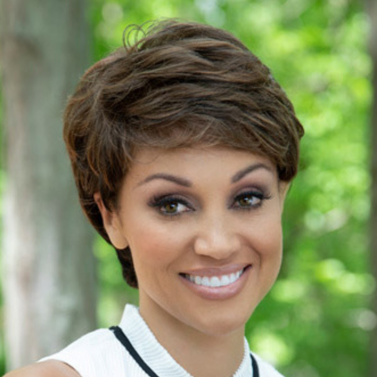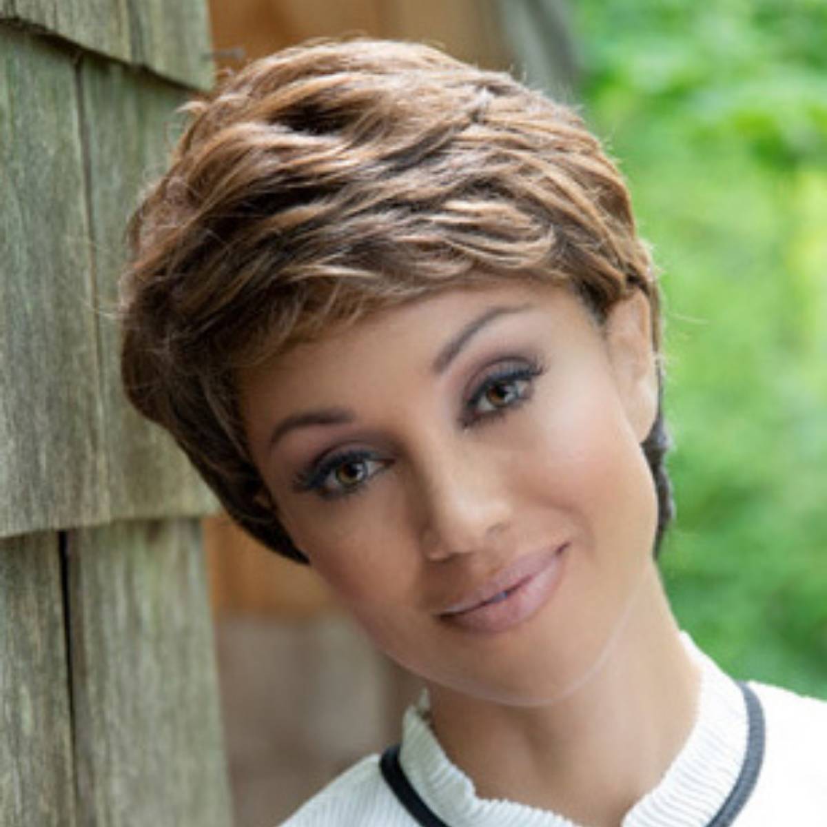 HEATHER by ENVY features the latest in heat friendly technology with a unique blend of 30% human hair/70% synthetic that withstands temperatures up to 210 degrees. Brush, comb or blow day and our exclusive?EnvyHair??will maintain the feel and texture of human hair¡ªwhile our Mono Top Lace Front construction and hand-tied sides and back provide an equally natural appearance. For a less constructed look, use your favorite styling cream or pomade to add some spiky texture.