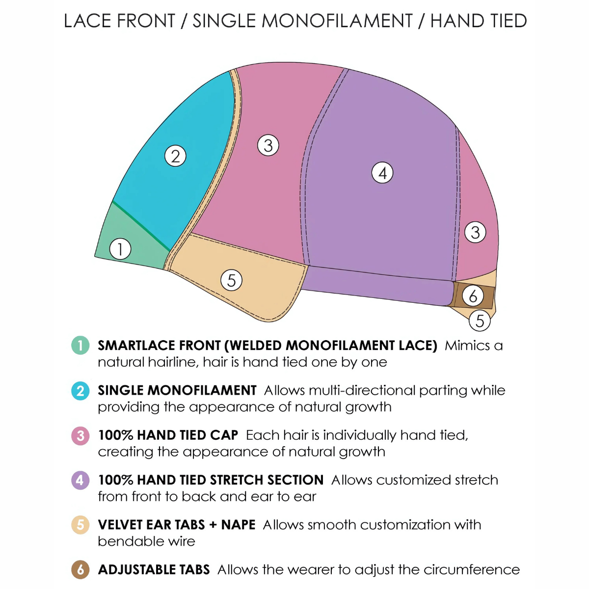 - Cap Design: Lace Front / Monofilament Top / 100% Hand Tied