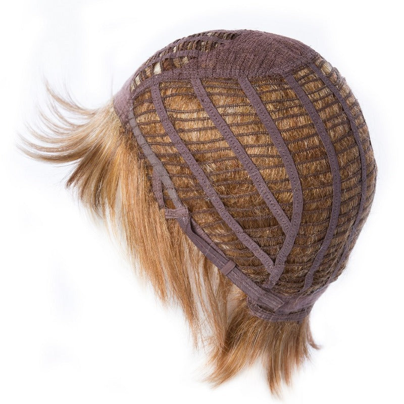 The Toni Brattin Impressive Wig features a provocative cut with fashionable bangs and short styled layering. A trendy style ¨C the Impressive Wig can be worn swept away from the face for a classic look or tousled gently for a more cutting edge style. A specially designed cap can be easily adjusted for a custom and comfortable fit with the sizing tabs in the neckline. Nylon wig cap and storage box included.