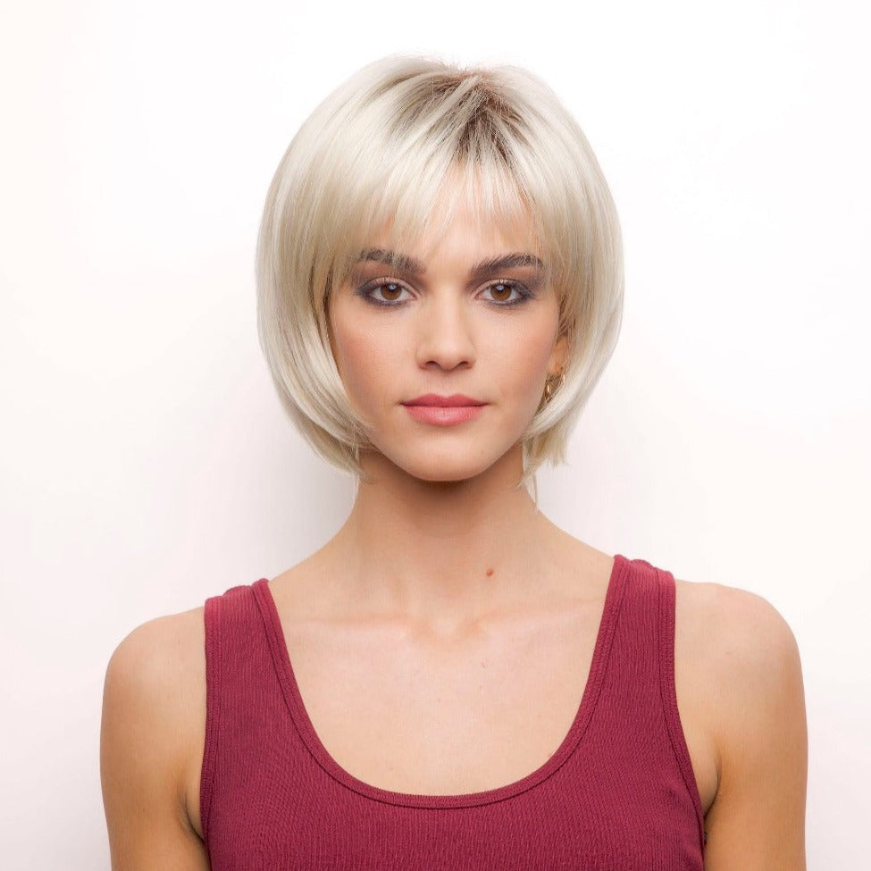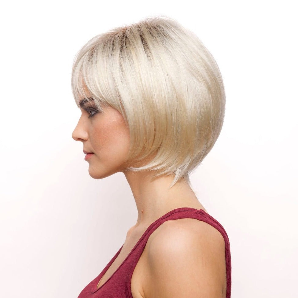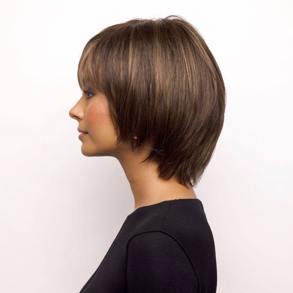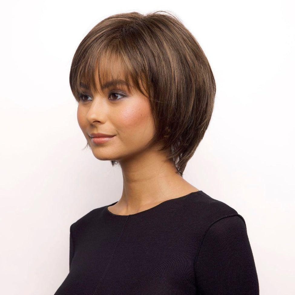 - Bangs: Yes / Fringe: 3.5" / Crown: 7.5" / Nape: 4.3"