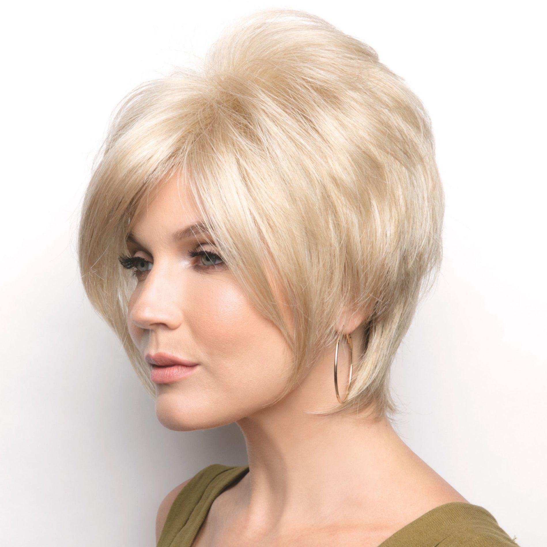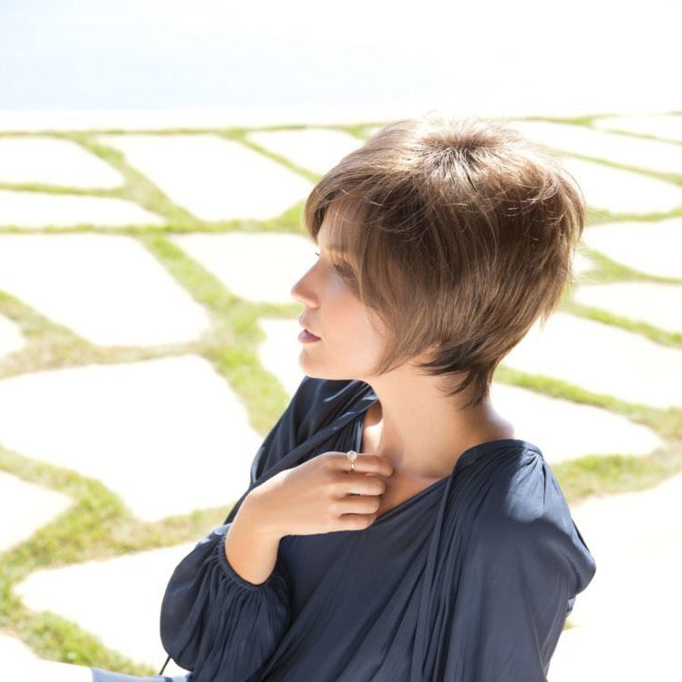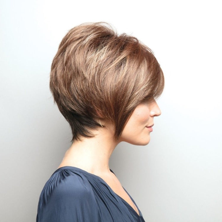 Kate from our Noriko Collection is a short-length synthetic wig. This straight ready-to-wear wig is a geometric, fringed bob complimented by a razor-finished tiers and arched ends for a stunning and silhouette style. This style will give you a very sophisticated energy. This look is also very youthful and actually timeless. Kate is machine made with adjustable tabs in the back nape area to allow a more comfortable fit. The result is a comfortable fit with a natural look that is both fashionable and easy to wear.