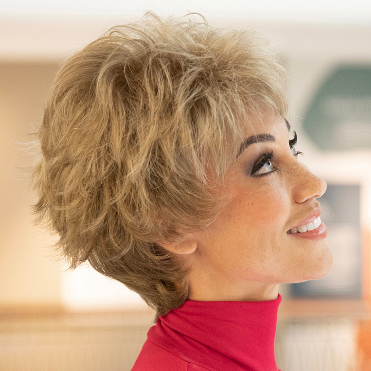 KITANA by ENVY is spunky and textured with layers galore! The tapered, extended nape offers a soft hugging neckline, while razored edges frame the face for that deconstructed look loved by style conscious women. Its breathable Mono Top construction creates the look and movement of real hair, giving you the flexibility to add a little lift with your favorite styling products or comb it from side to side.