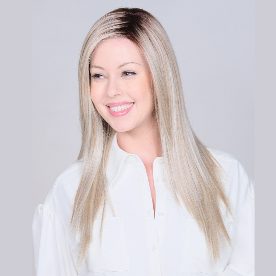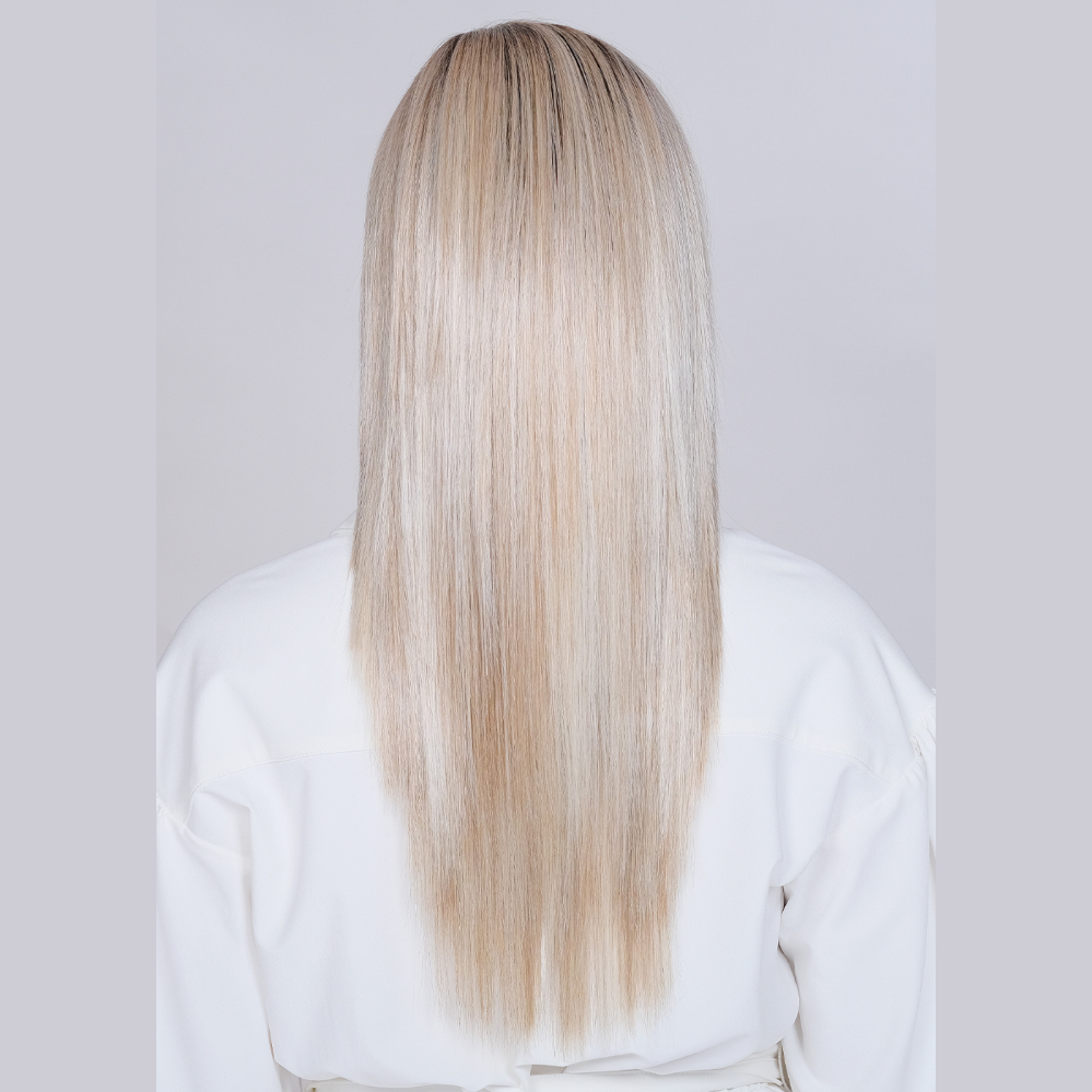 The luxurious 23" version of Kushikamana 18. "Kushikamana" means "connected" in Swahili.? Kushikamana 23 is an exceptionally straight, most realistic flat-iron pressed look. Temple-to-temple hand-tied lace front, open cap, wide and extended partial mono part delivers natural hairline and comfort. Ready to wear, since they come all pre-styled with the luxurious, silky, and modern texture.