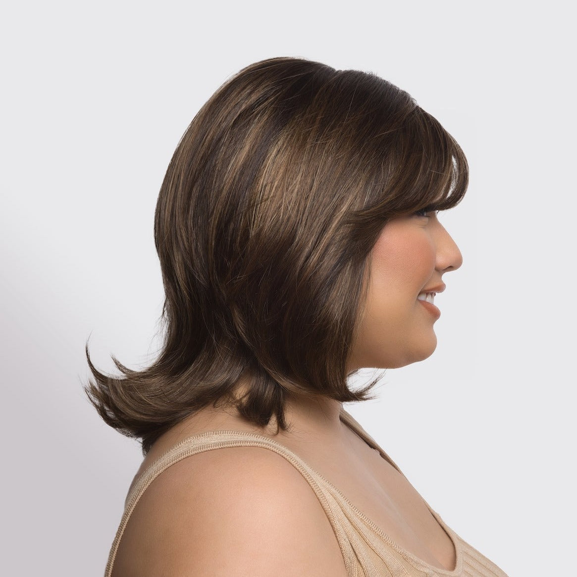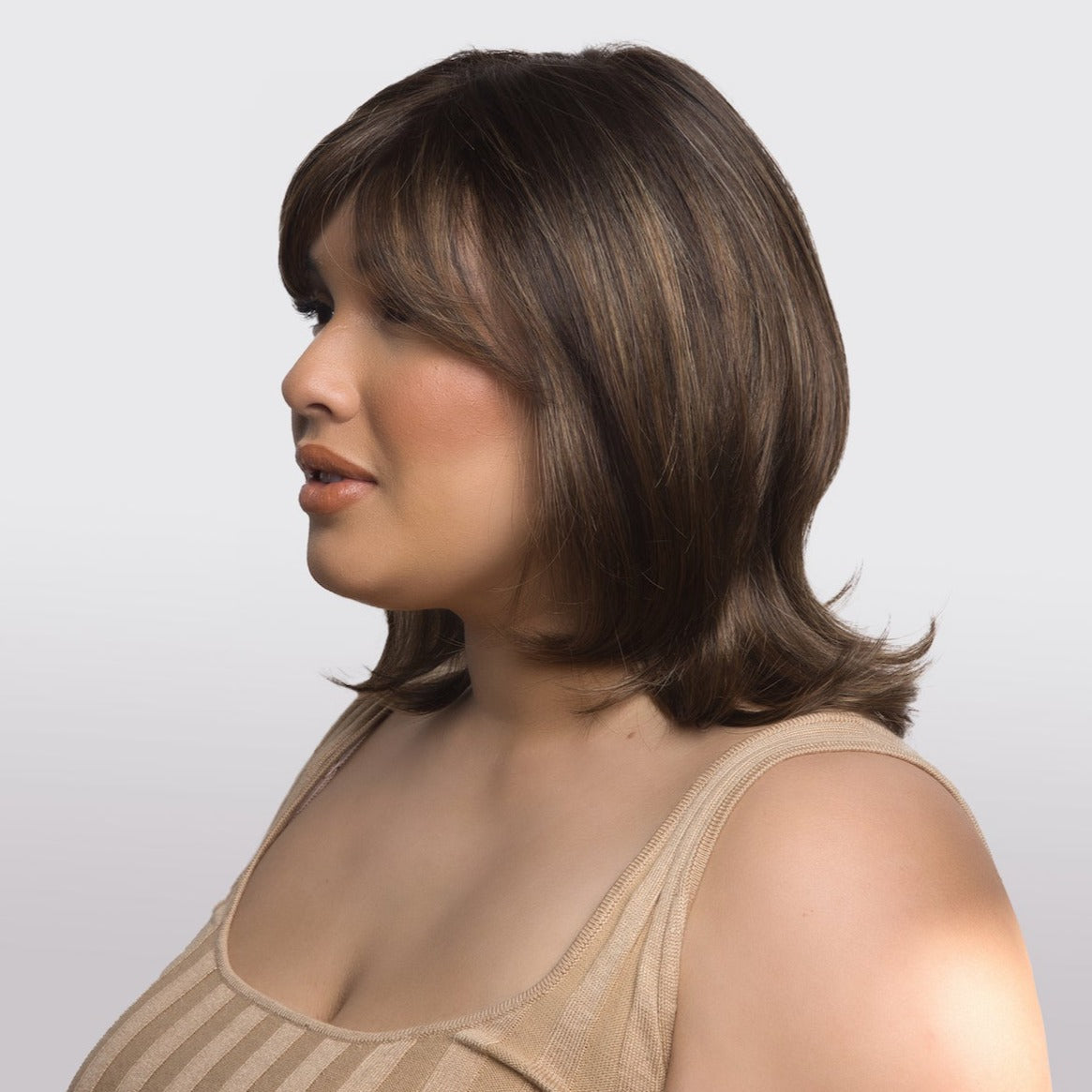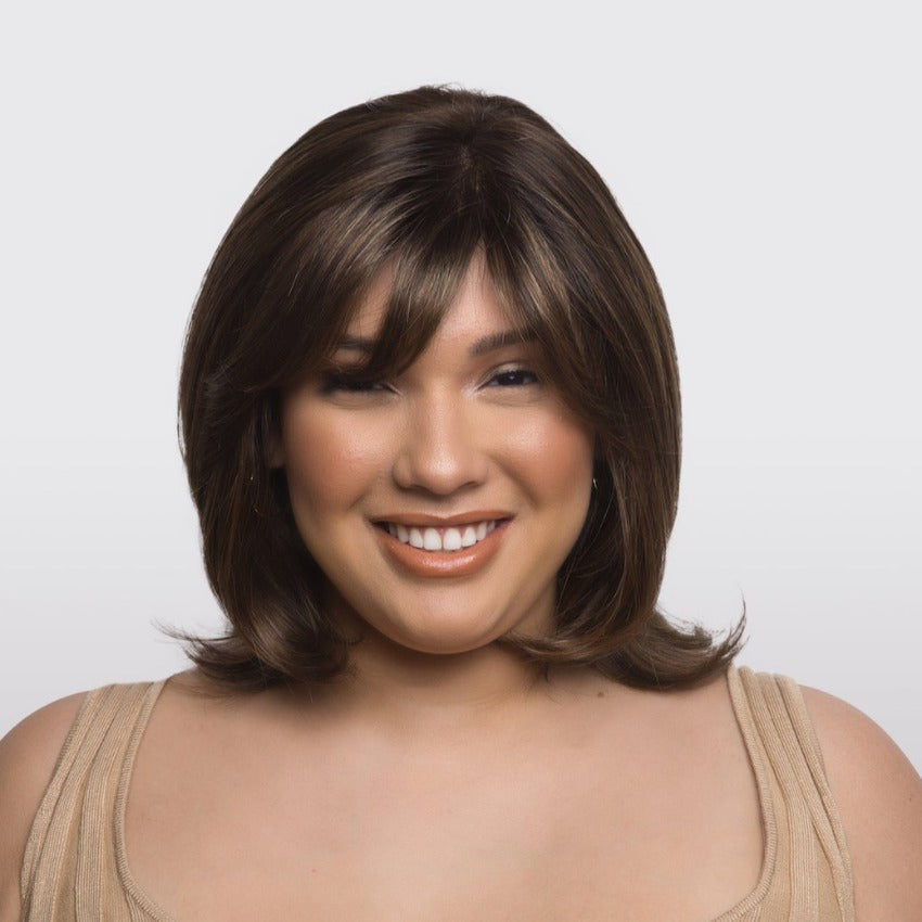 Levy from our Amore Collection is a mid-length synthetic wig. This layered ready-to-wear wig rest on the shoulders with full fringe and a bouncy full salon look. Its Double Monofilament cap construction is combined with calibrated machine wefting along the sides and back. Levy cap includes polyurethane tape tabs along the front and adjustable tabs in the back neck area, to allow for comfortable fit. The result is a comfortable fit with a natural look that is both fashionable and easy to wear.