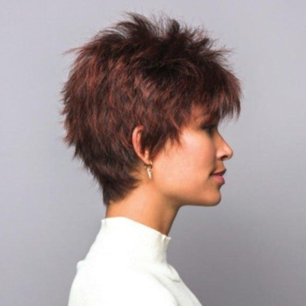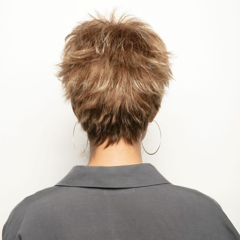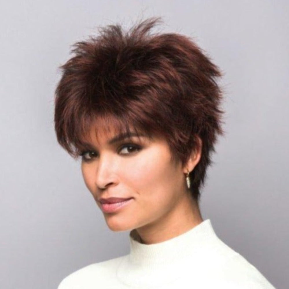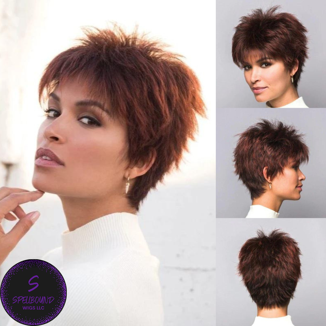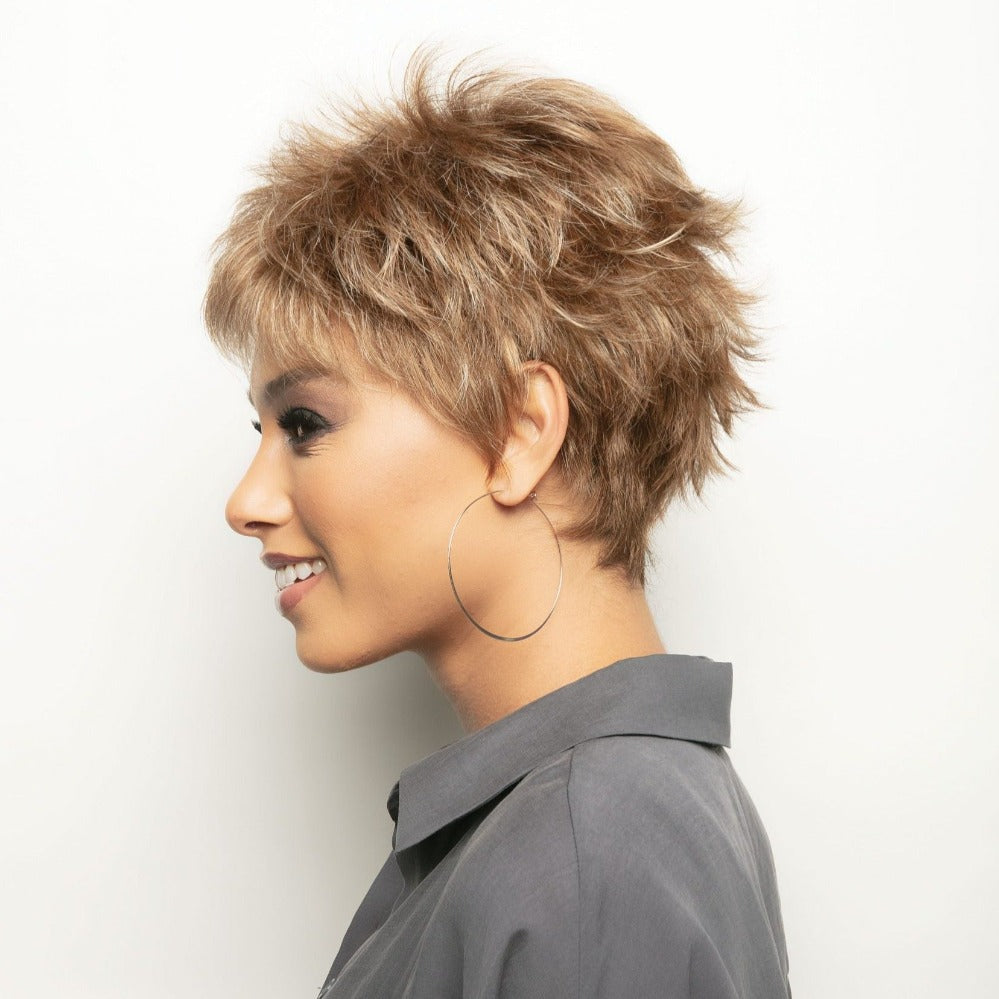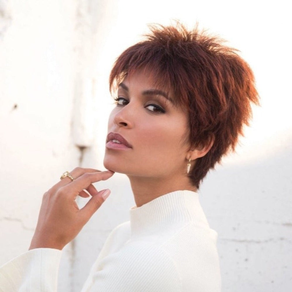 Lizzy from our Rene of Paris Hi-Fashion Collection is a short-length synthetic wig. This straight ready-to-wear wig is a short and saucy style with razor finished layers and wispy bangs. Just shake it or spike it up and go. This style will give you an all-round poised look. Lizzy is machine made with adjustable tabs in the back nape area to allow a more comfortable fit. The result is a comfortable fit with a natural look that is both fashionable and easy to wear.