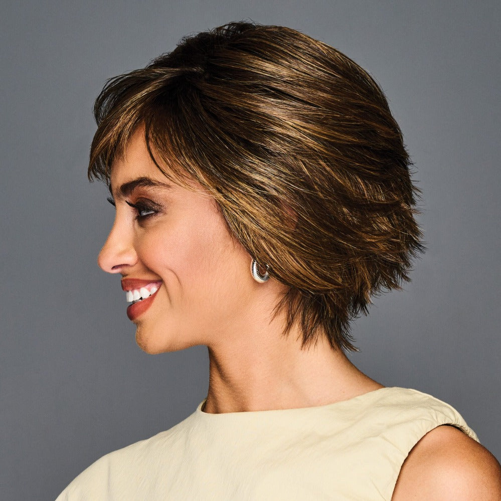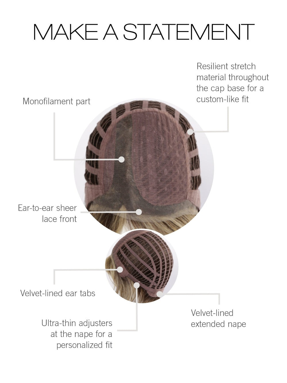 This modern bob takes you from day to night with straight and piecey style that suits any occasion. The extended lace front gives you the flexibility to wear the sweeping bangs whichever way you prefer. You can even use a curling iron to give the heat-friendly Tru2Life hair a soft wave. So go ahead and Make A Statement just the way you like.