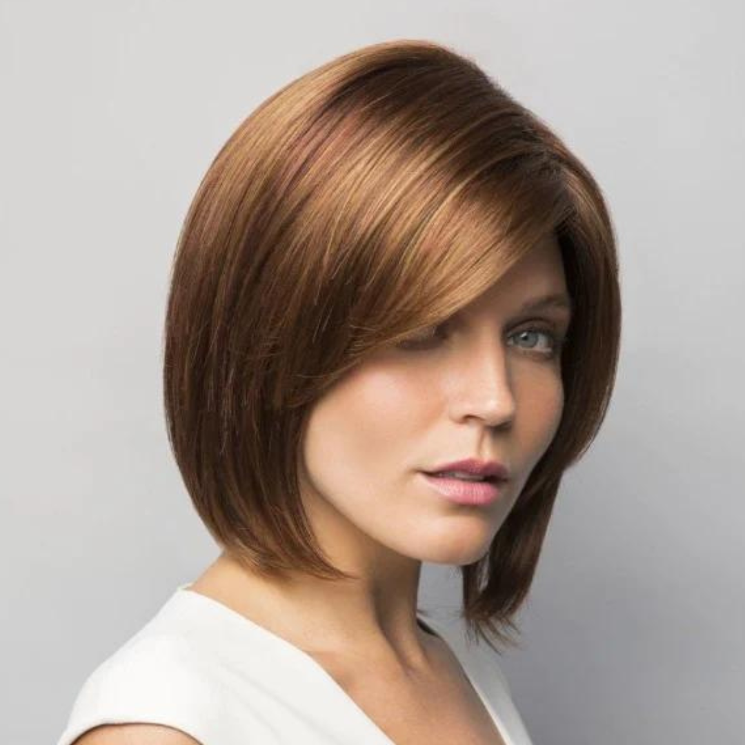 May from our Noriko Collection is a short-length synthetic wig. This straight ready-to-wear wig with elegance, this style is a relaxed bob with a wispy perimeter and feathery swept sides. May is machine made with adjustable tabs in the back nape area to allow a more comfortable fit. The result is a comfortable fit with a natural look that is both fashionable and easy to wear.