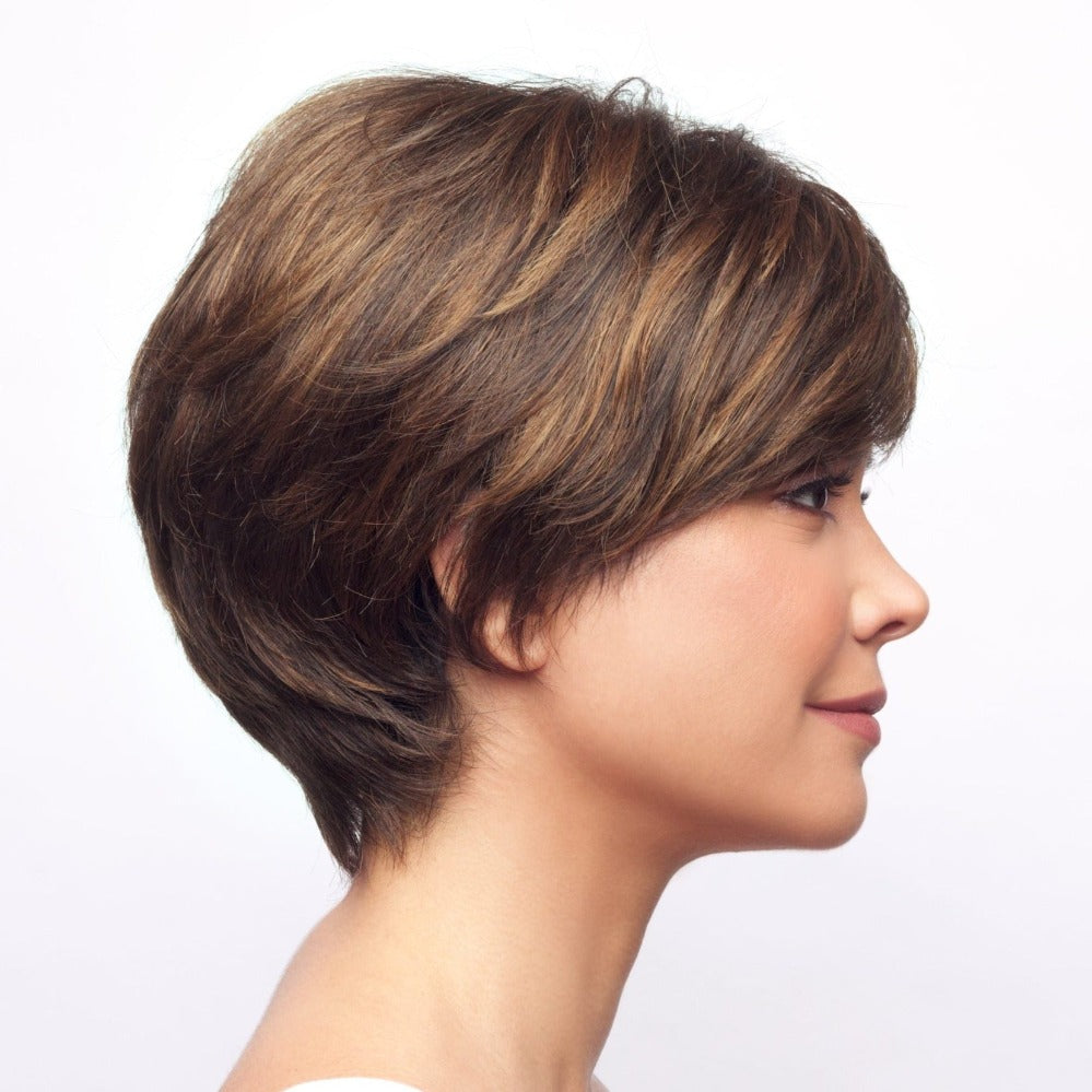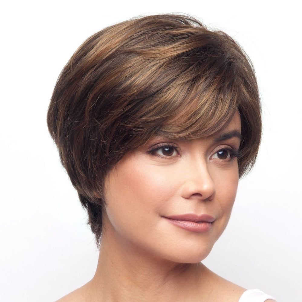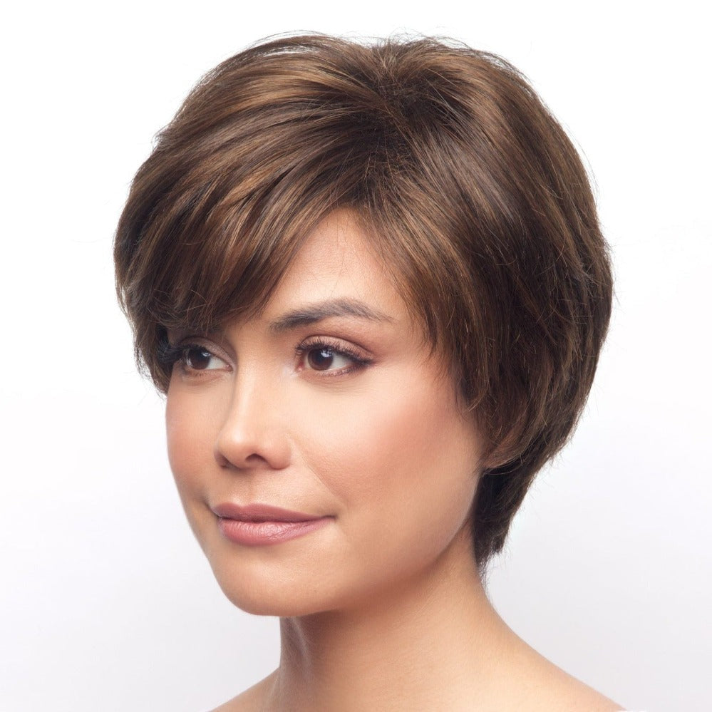 Megan from our Noriko Collection is a short-length synthetic wig. This straight ready-to-wear wig is a semi-wedge bob with tapers in the back. This style will leave give you a soft, wispy effect that隆炉s undeniably chic. Megan is machine made with adjustable tabs in the back nape area to allow a more comfortable fit. The result is a comfortable fit with a natural look that is both fashionable and easy to wear.