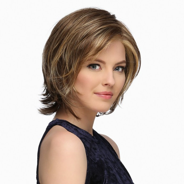 Monika is a soft layered bob with the perfect combination of layers, volume and side swept bangs. Featuring a flawless 100% hand-tied lace front and lace part, Monika offers exceptional versatility.