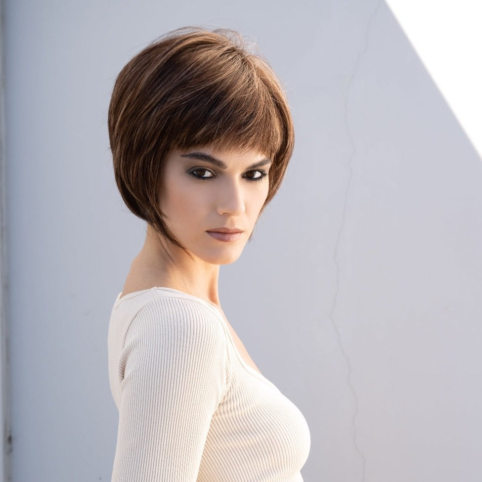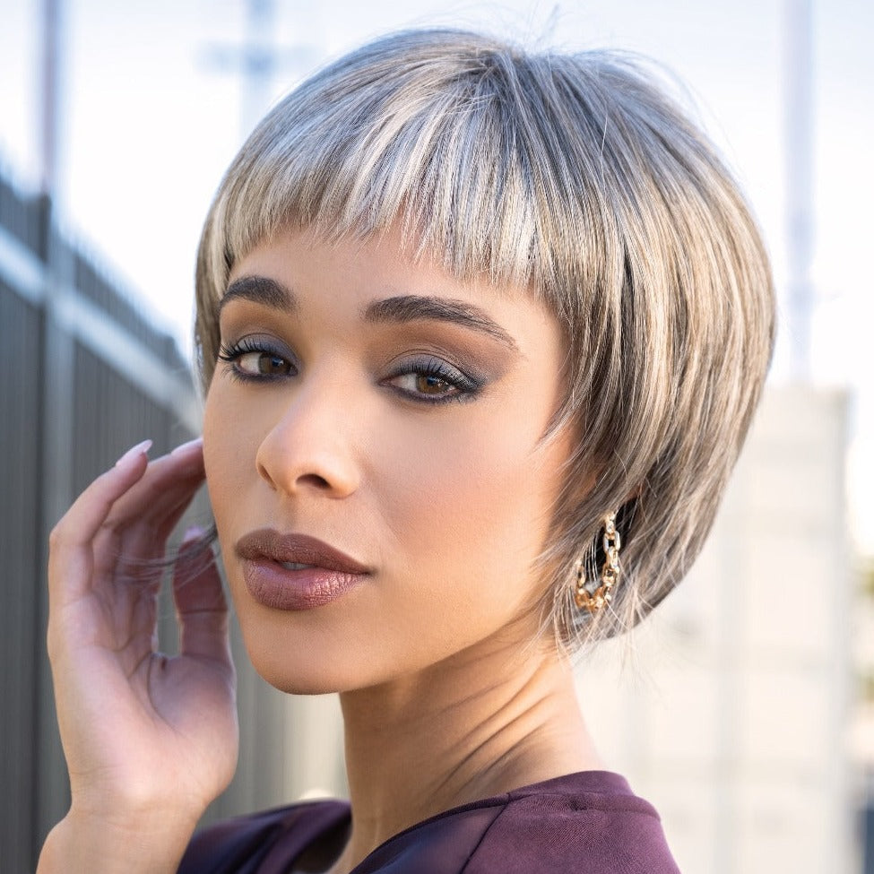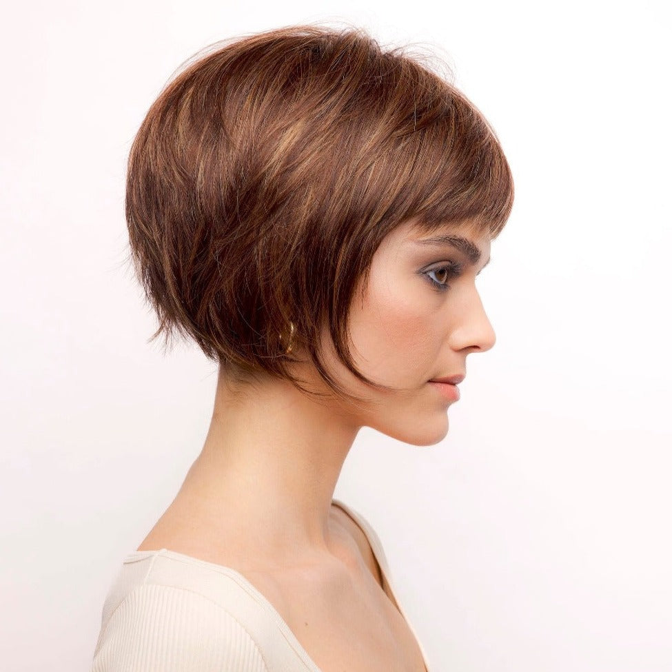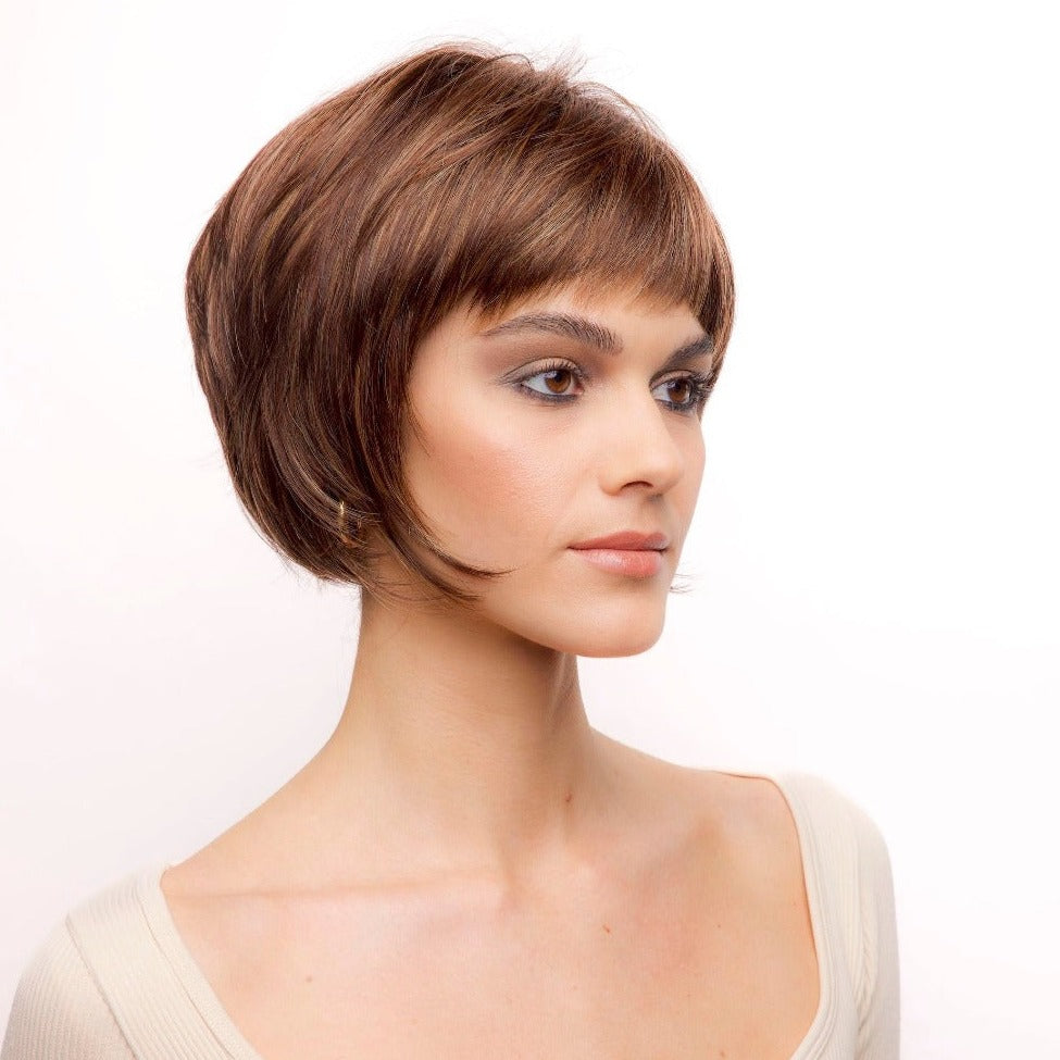 Nell from our Rene of Paris Hi-Fashion Collection is a short-length synthetic wig. This straight ready-to-wear wig is a short bob with a full fringe. Nell is a sleek and sophisticated style. The full bangs will flatter your eyes and the face framing layer accentuate your best facial features. If you want a playful and bold style to gain attention, Nell is what you¡¯re looking for. Nell is machine made with adjustable tabs in the back nape area to allow a more comfortable fit. This result is a comfortable fit with a natural look that is both fashionable and easy to wear.