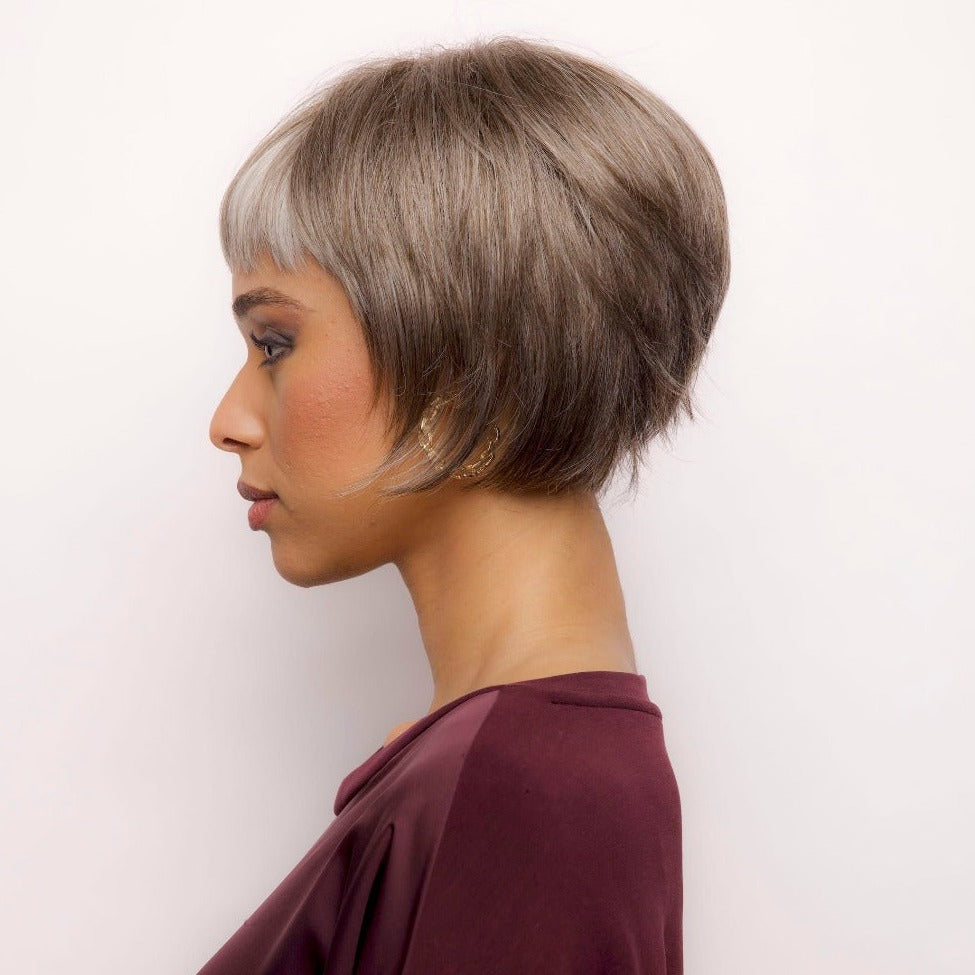 - Bangs: Yes / Fringe: 2.3" / Crown: 5.3" / Nape: 1.5"