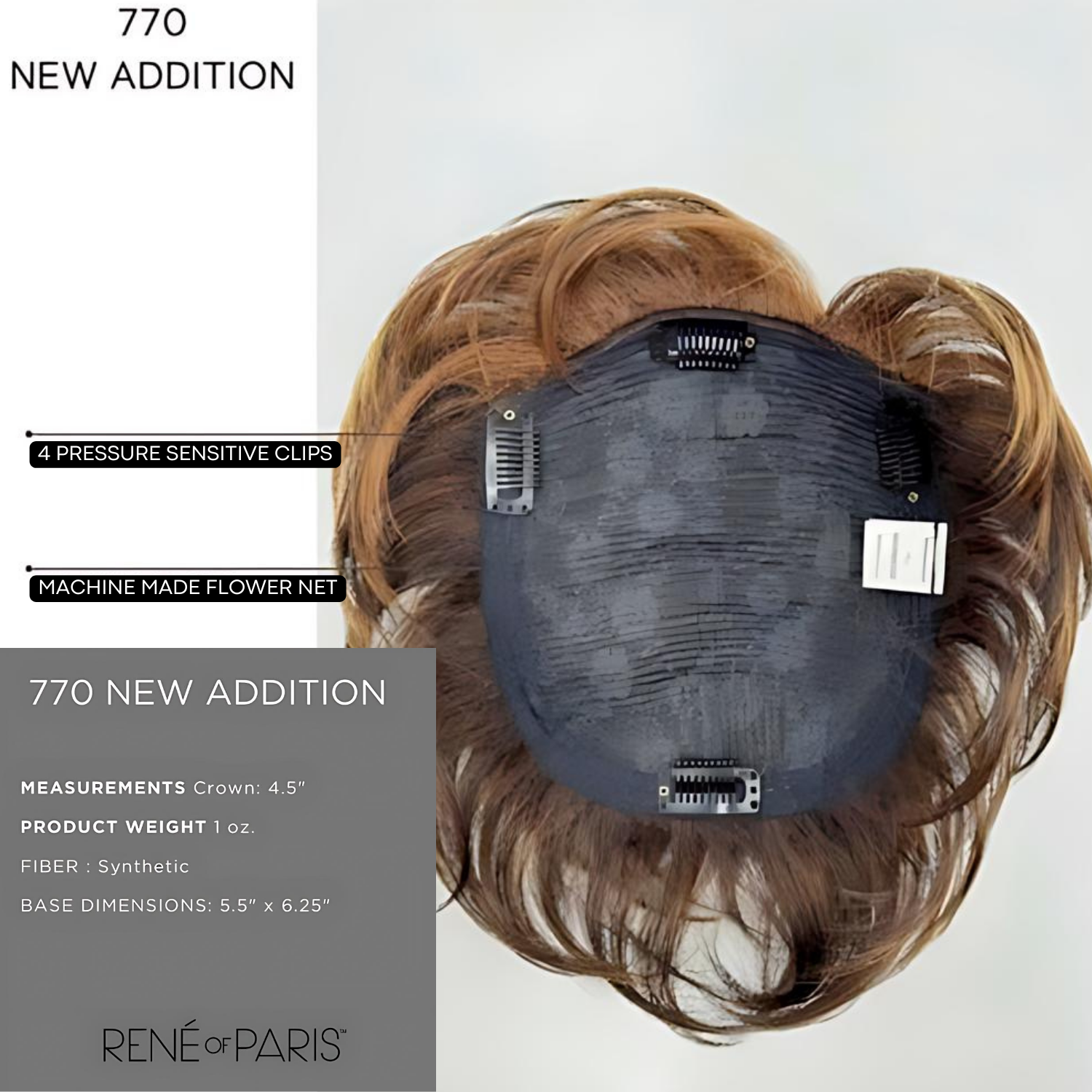 New Addition Top Piece from our Rene of Paris Hi-Fashion Collection is a short length synthetic hair topper. This straight hair enhancer is a great enhancer designed to provide extra volume or a fresh look. The New Addition is machine made and includes four toupee clips. The result is a comfortable fit with a natural look that is both fashionable and easy to wear.?