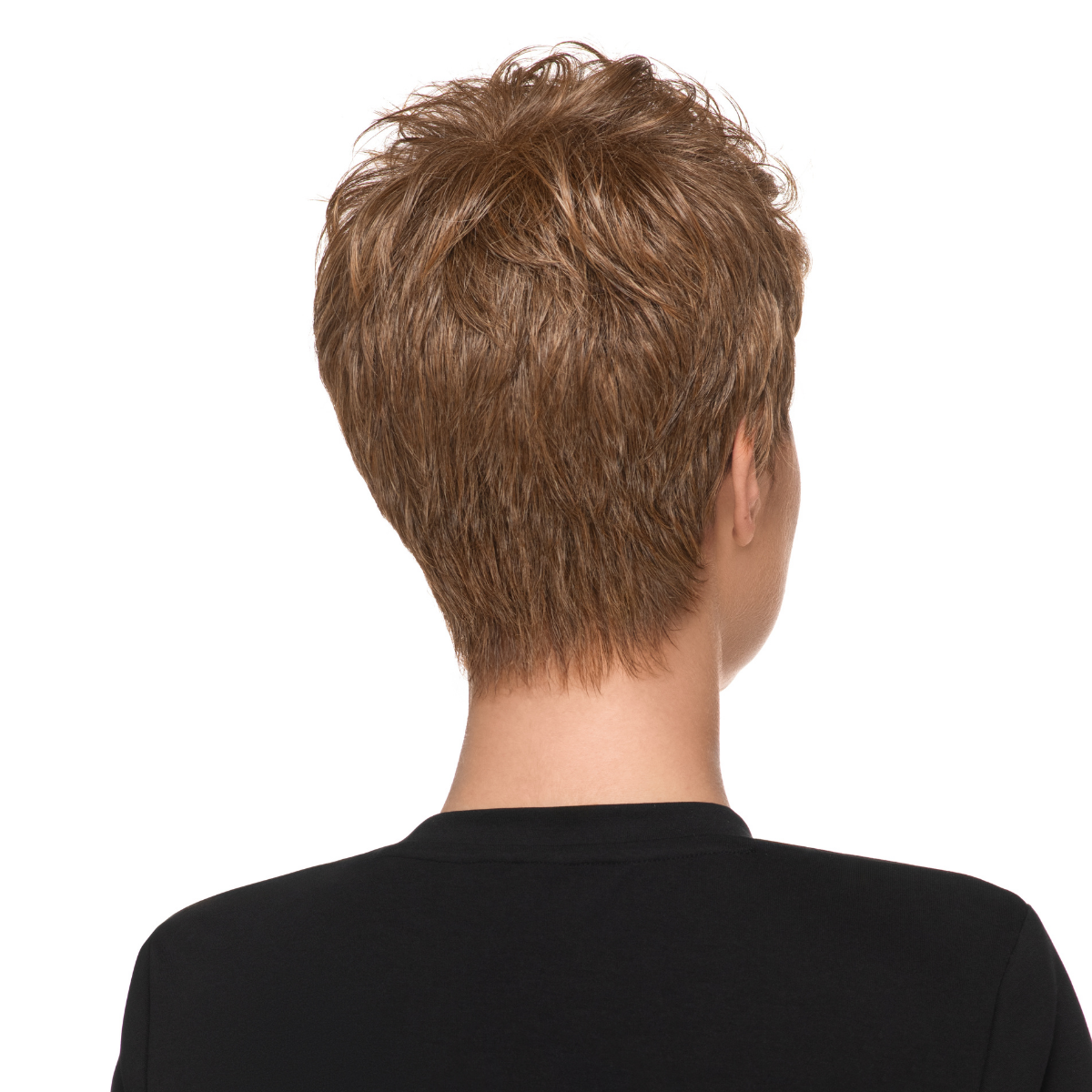 A low density brushed up top with tapered sides and back. Special pre-teased roots provide lift without any bulk or frizzies. Long enough to brush over or behind your ears and adjustable ear tabs for just the right fit.