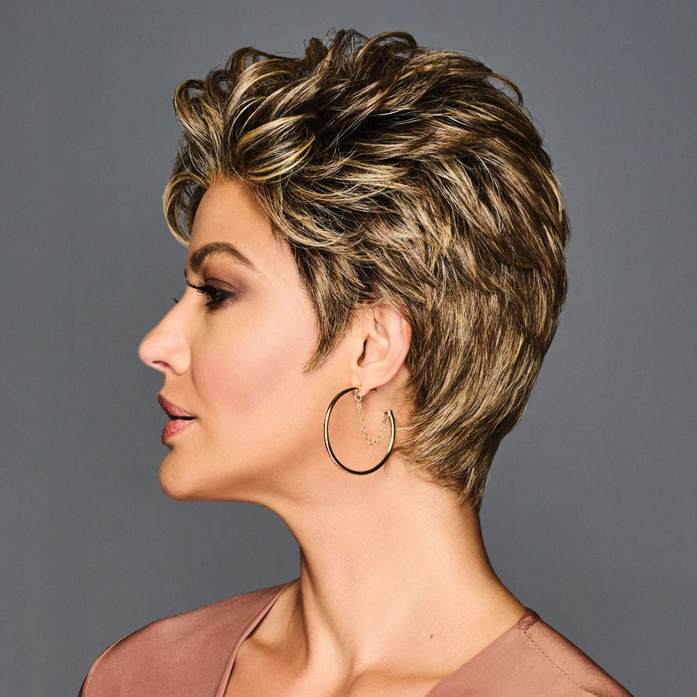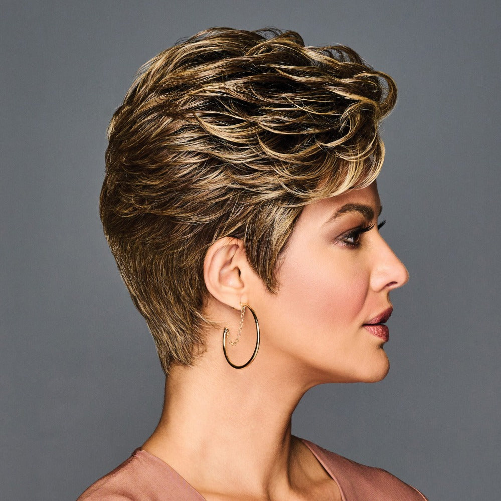 Effortless, shake-and-go style. Short and sassy with a fine lace front that lets you wear the piecey bang forward or brushed back. Curl the heat-friendly Tru2Life hair for volume or flat iron for a sleeker look. Get Out The Door and on with your day!