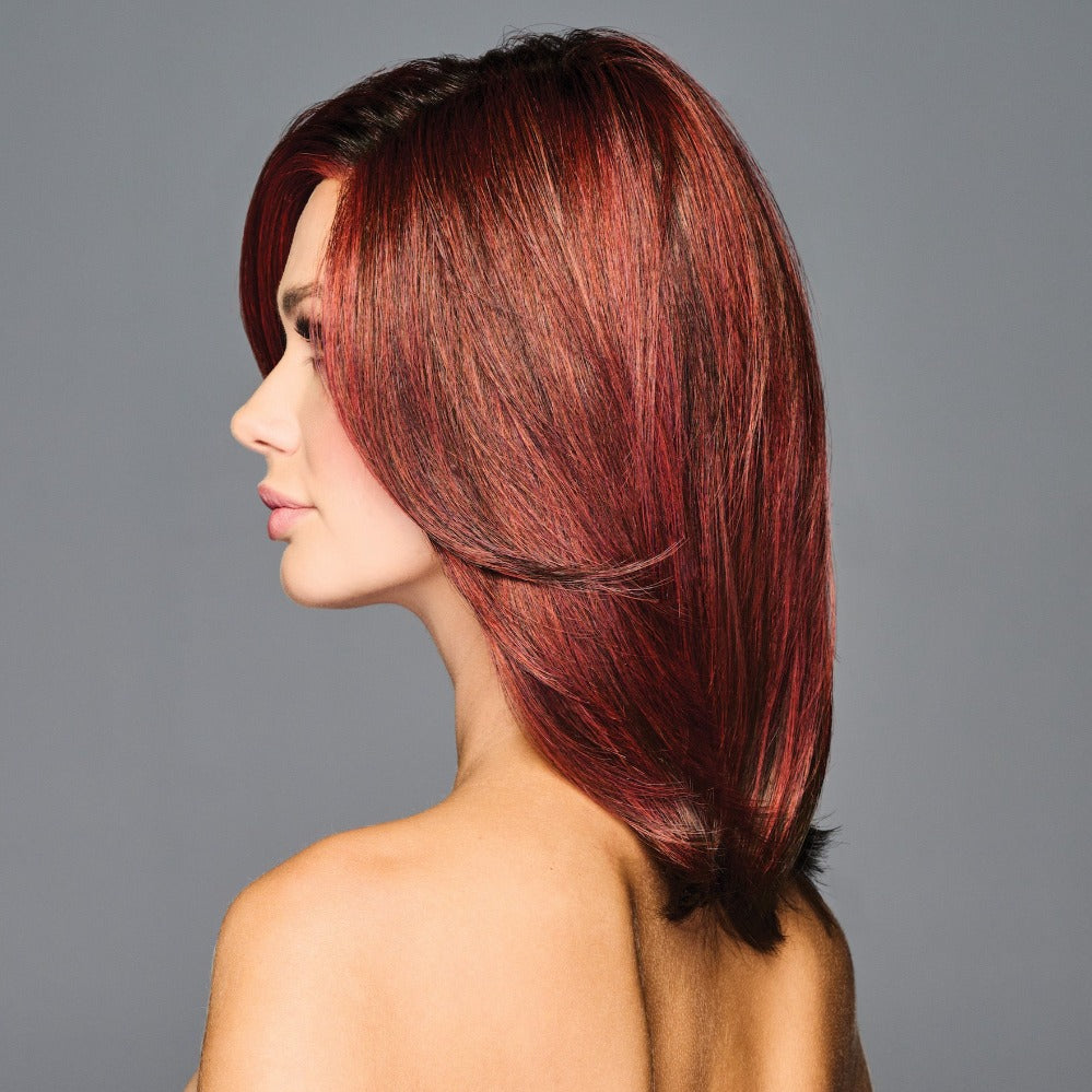 Long sleek layers in a mid-length cut create the look of length. Ageless and effortless. Easier to maintain and flattering for women of all ages. An extended lace front lets you wear half up or brushed away from the face with a beautifully natural-looking hairline. You will easily Own The Room in this youthful, seductive style.