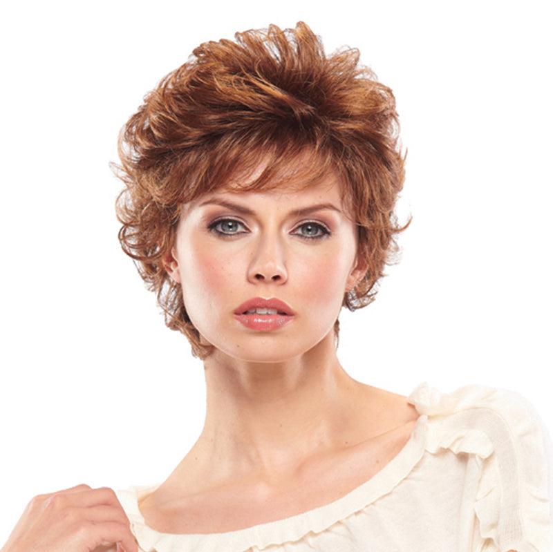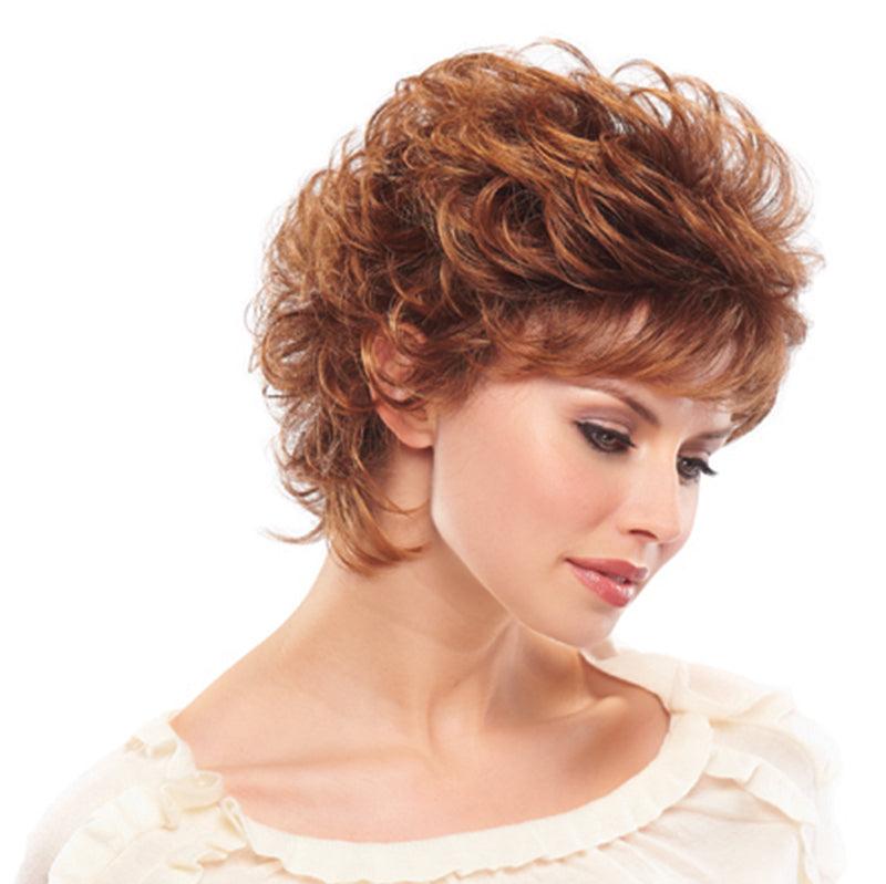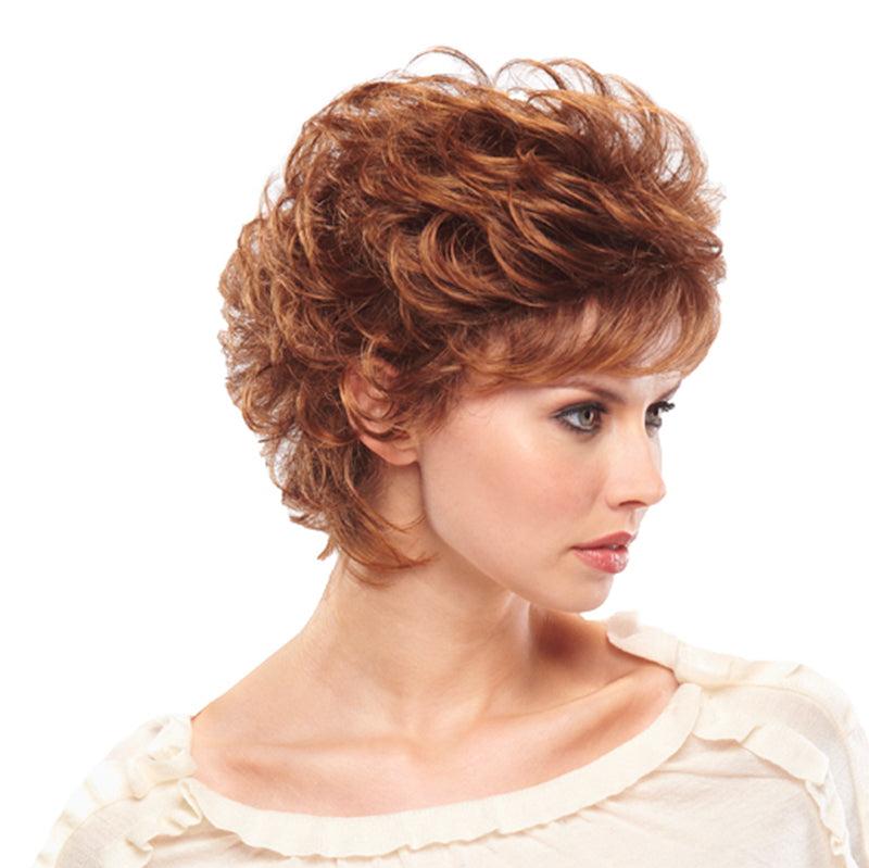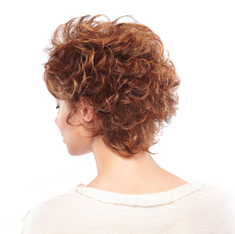 Layers of large, playful curls and face-framing bangs make this short wig easy to style, while O'solite construction keeps it light and natural feeling.