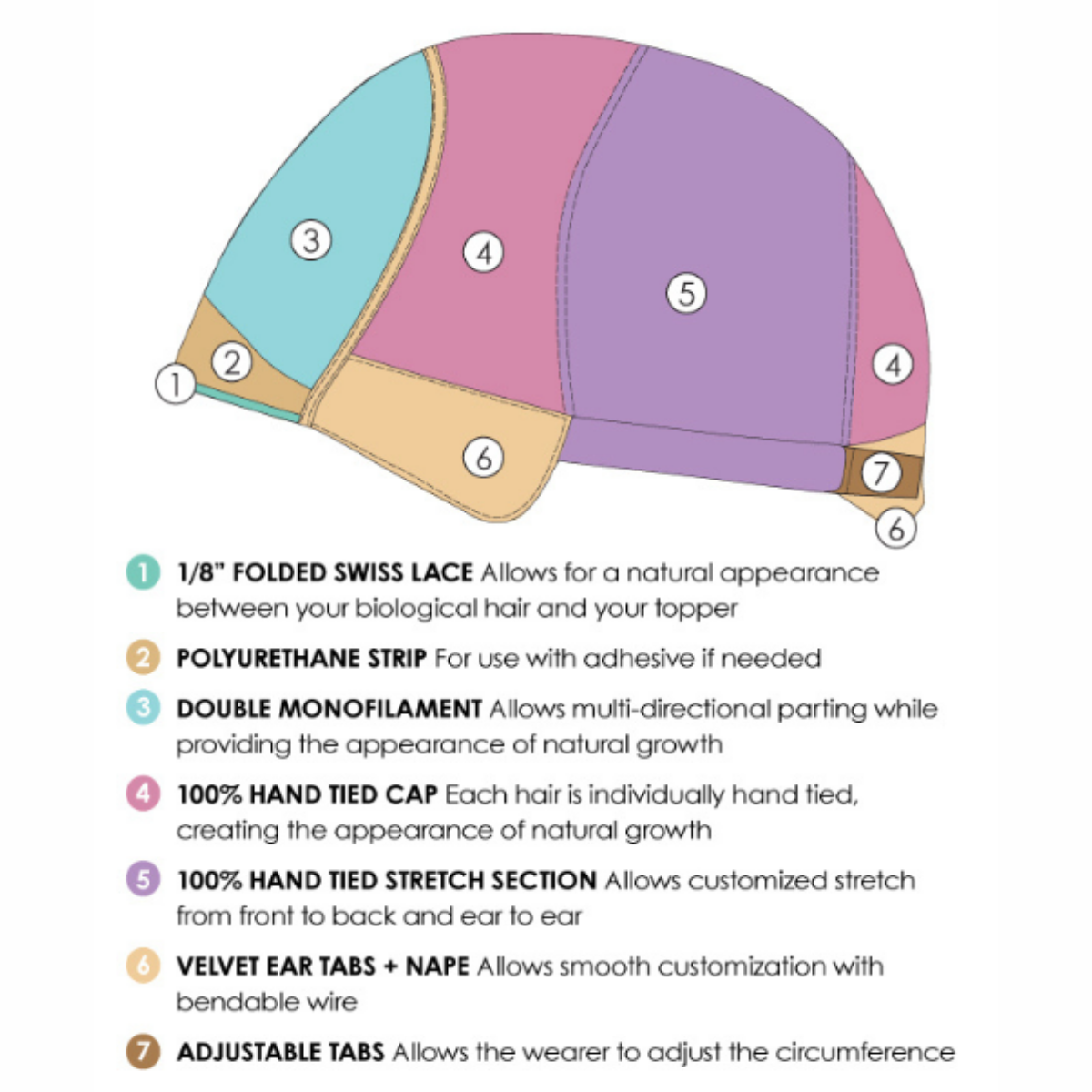 - Dimensions: Bang 10" / Crown 17.5" / Side 12.5" / Nape 14.5"?