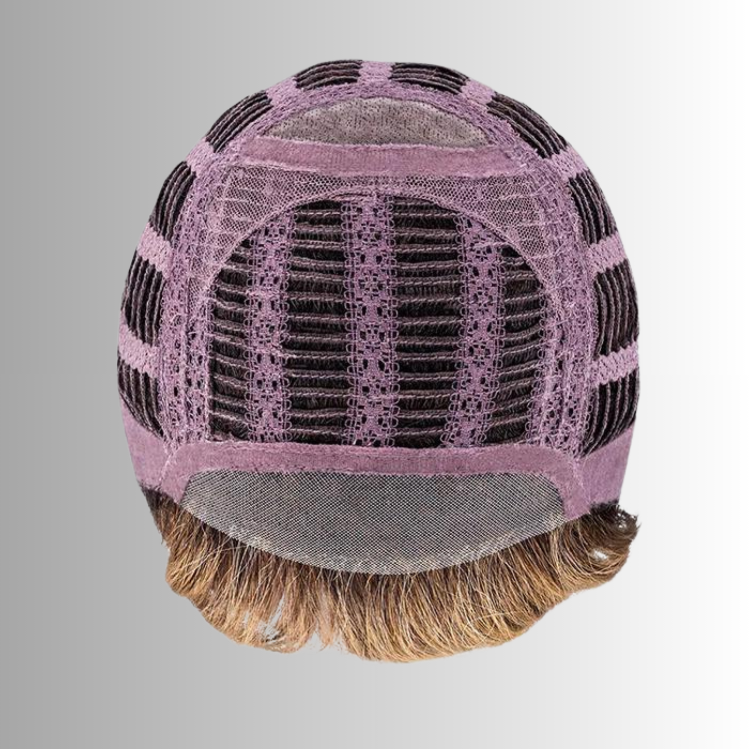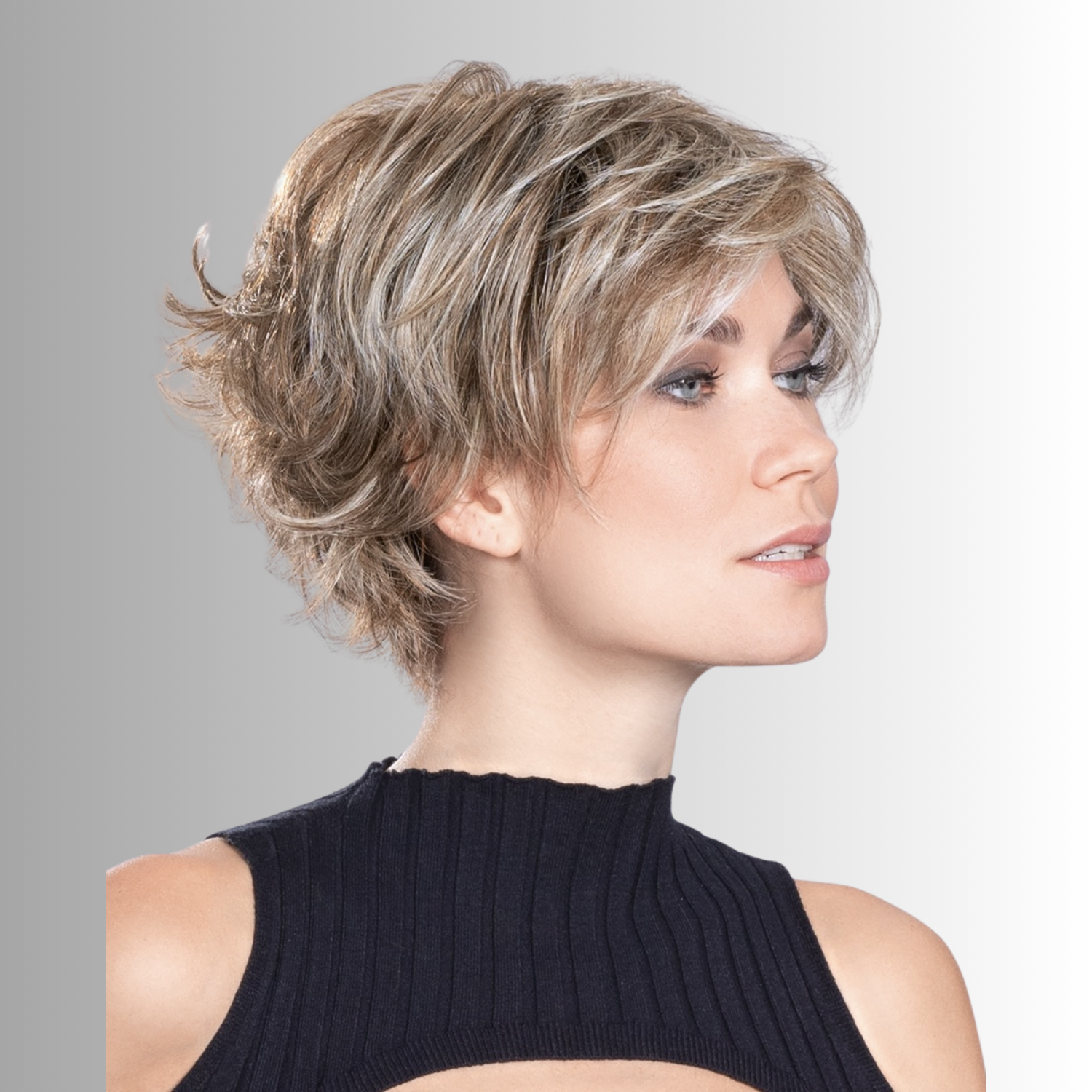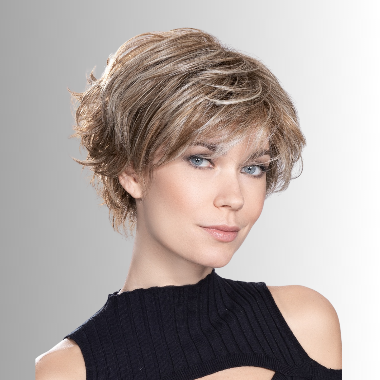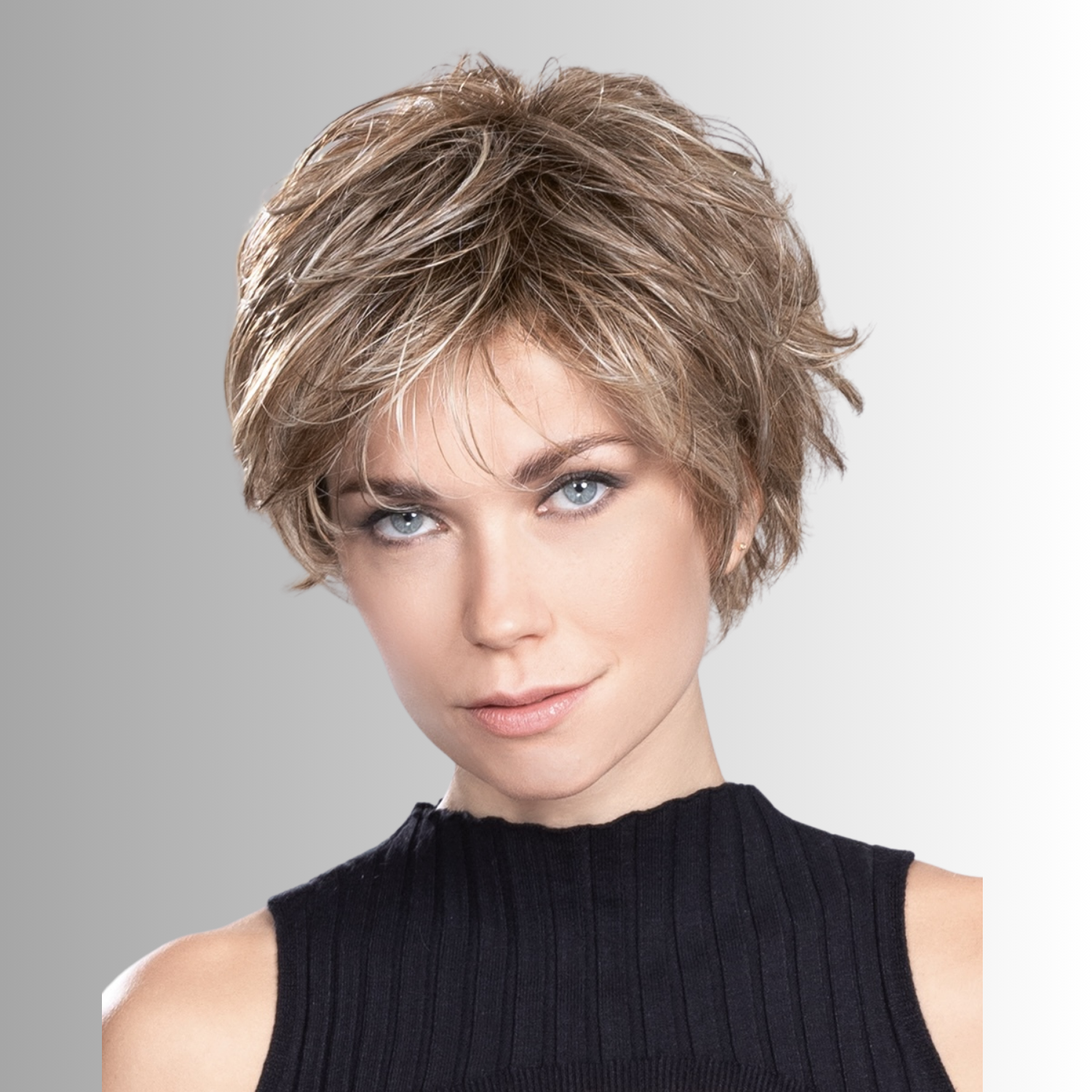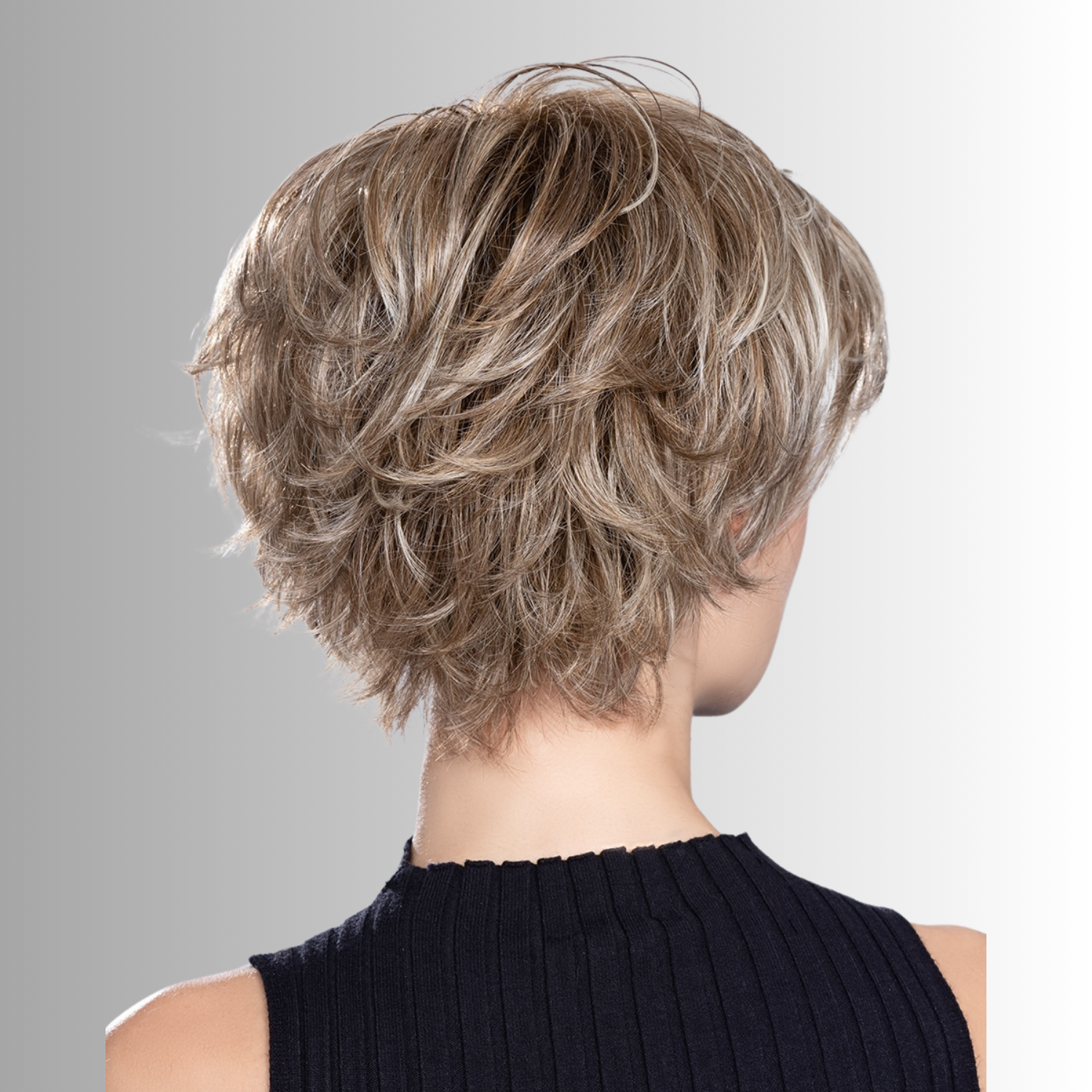 The Relax Large wig is a stylish and trendy wig made for large wig sizes designed with short shaggy layers that offer a fun and playful look. It is made from heat-friendly synthetic fiber that can be styled with heat tools like curling irons or straighteners to create different looks. The wig features a lace front that gives a natural-looking hairline and a mono crown that creates the illusion of natural hair growth at the crown area. The lace front also allows for easy and comfortable wearing, while the mono crown ensures that the wig looks realistic from any angle. The Relax wig is available in a range of stunning color options to suit any skin tone and personal style. Whether you're looking for a bold and bright color or a more natural shade, there is a color option to suit your needs. The feathered look of the wig gives it a light and airy feel, making it perfect for everyday wear or special occasions.