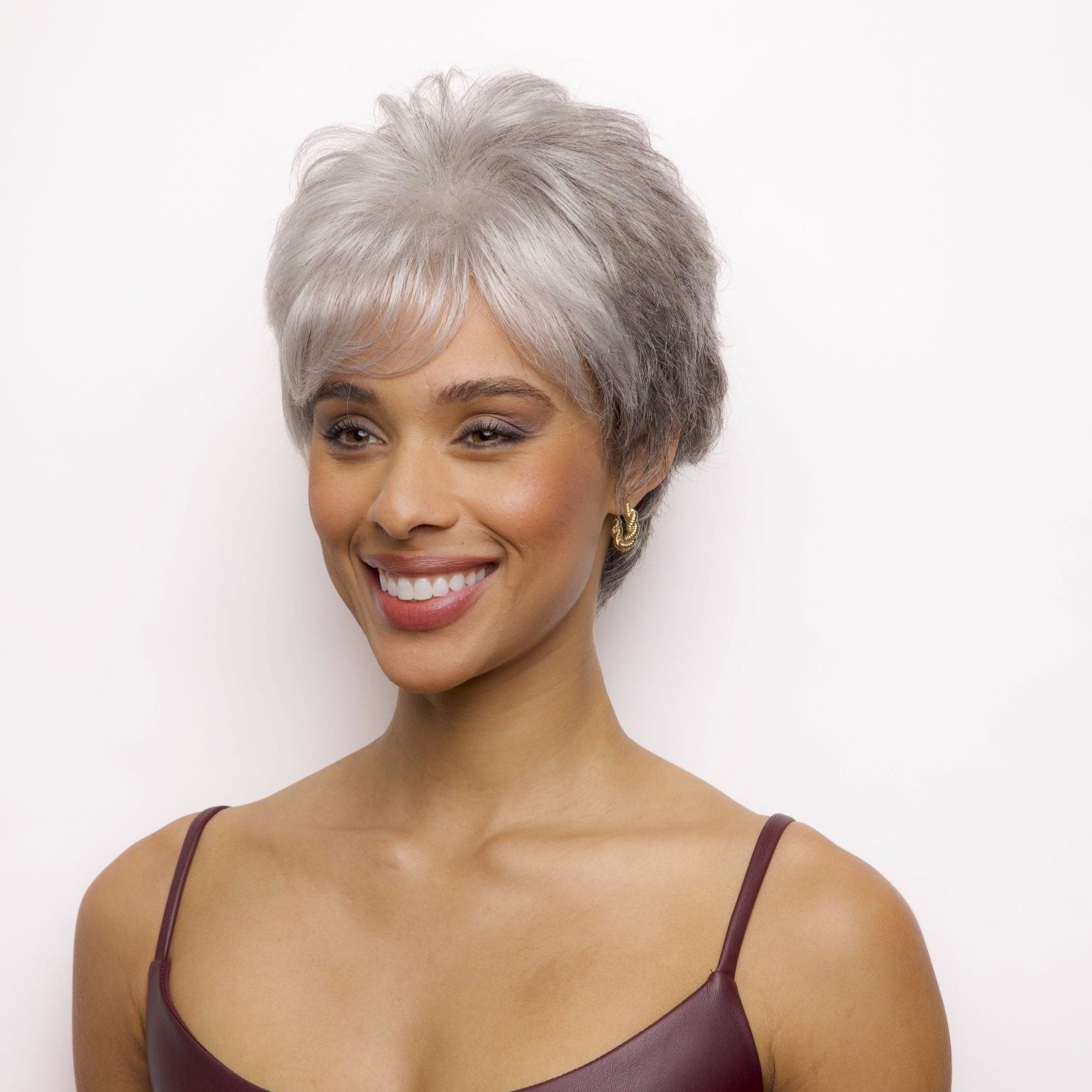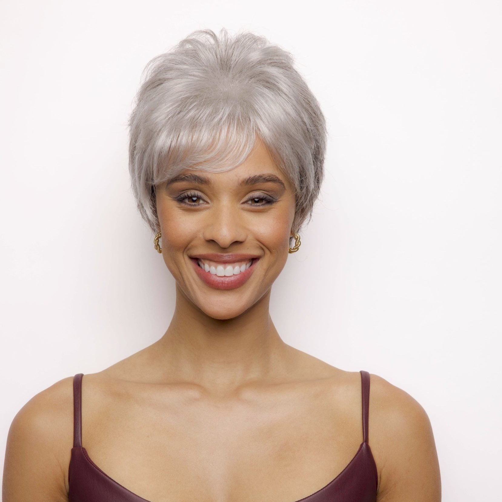 Rina from our Rene of Paris Hi-Fashion Collection is a short-length synthetic wig. This straight ready-to-wear wig has feathery layers with graduated back with soft wispy fringe. Rina is machine made with adjustable tabs in the back nape area to allow a more comfortable fit. The result is a comfortable fit with a natural look that is both fashionable and easy to wear.