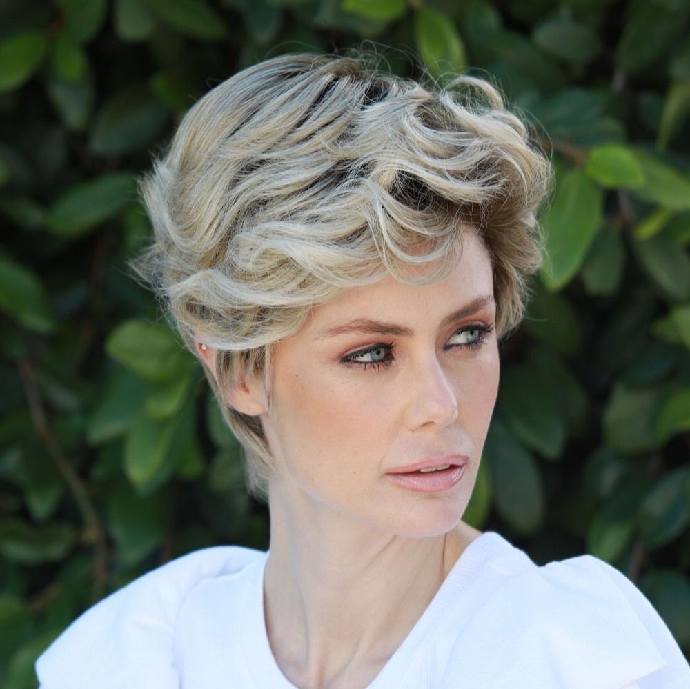 Topped with voluminous curls, Rita is a short, modern style that offers the ultimate in versatility. Thanks to this synthetic style¡¯s heat-resistant fiber strands, it can be straightened and curled to create soft waves or tighter spirals.