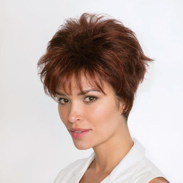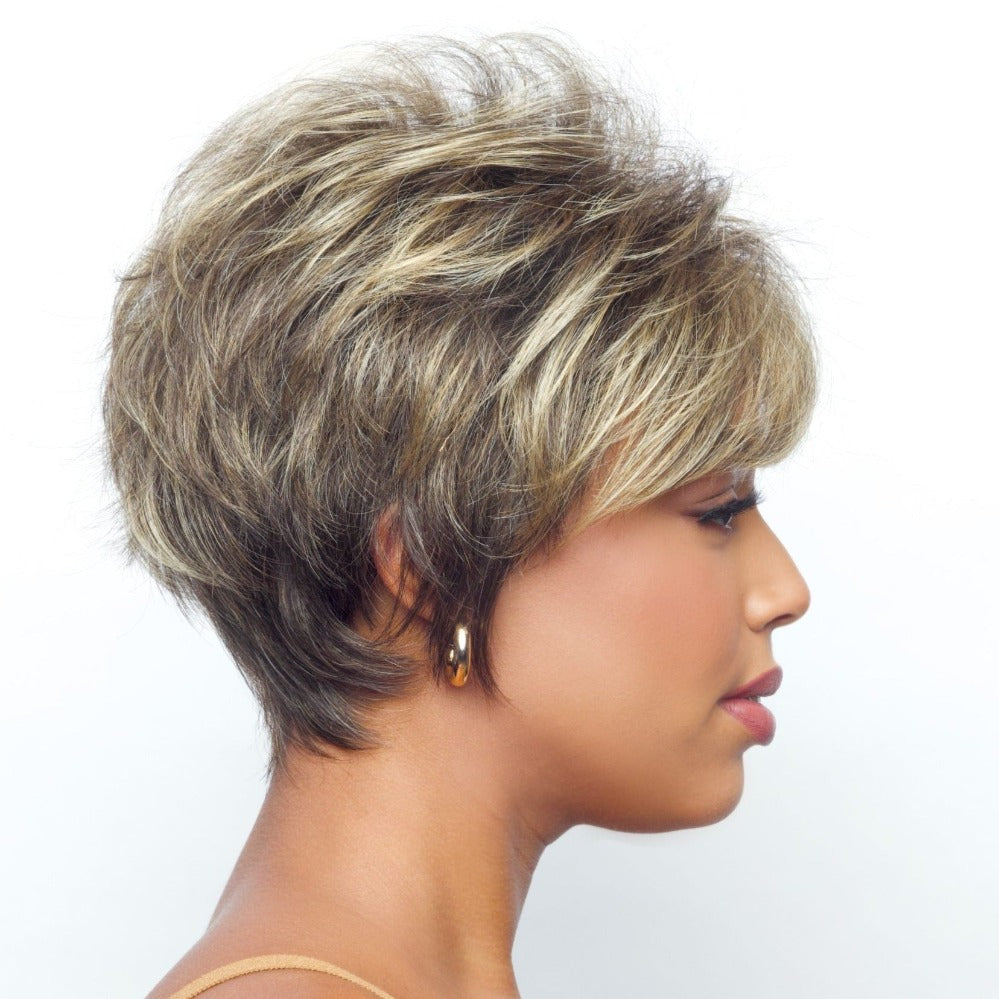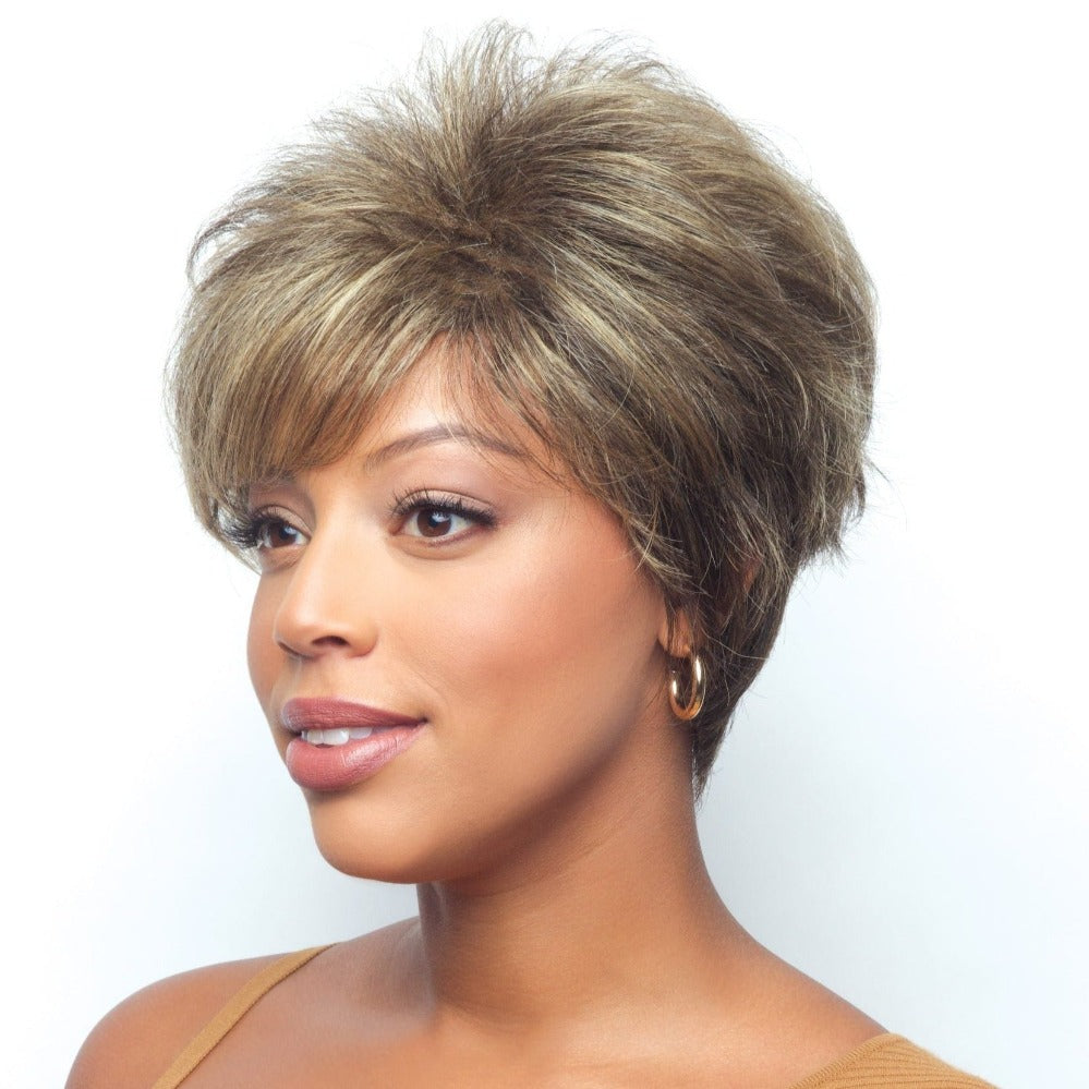 Roni from our Noriko Collection is a short-length synthetic wig. This straight ready-to-wear wig is a multi-layer style. Make a bold statement with this maximized volume wig full of texture and hugs the nape with tapered edges. Roni is machine made with adjustable tabs in the back nape area to allow a more comfortable fit. The result is a comfortable fit with a natural look that is both fashionable and easy to wear.
