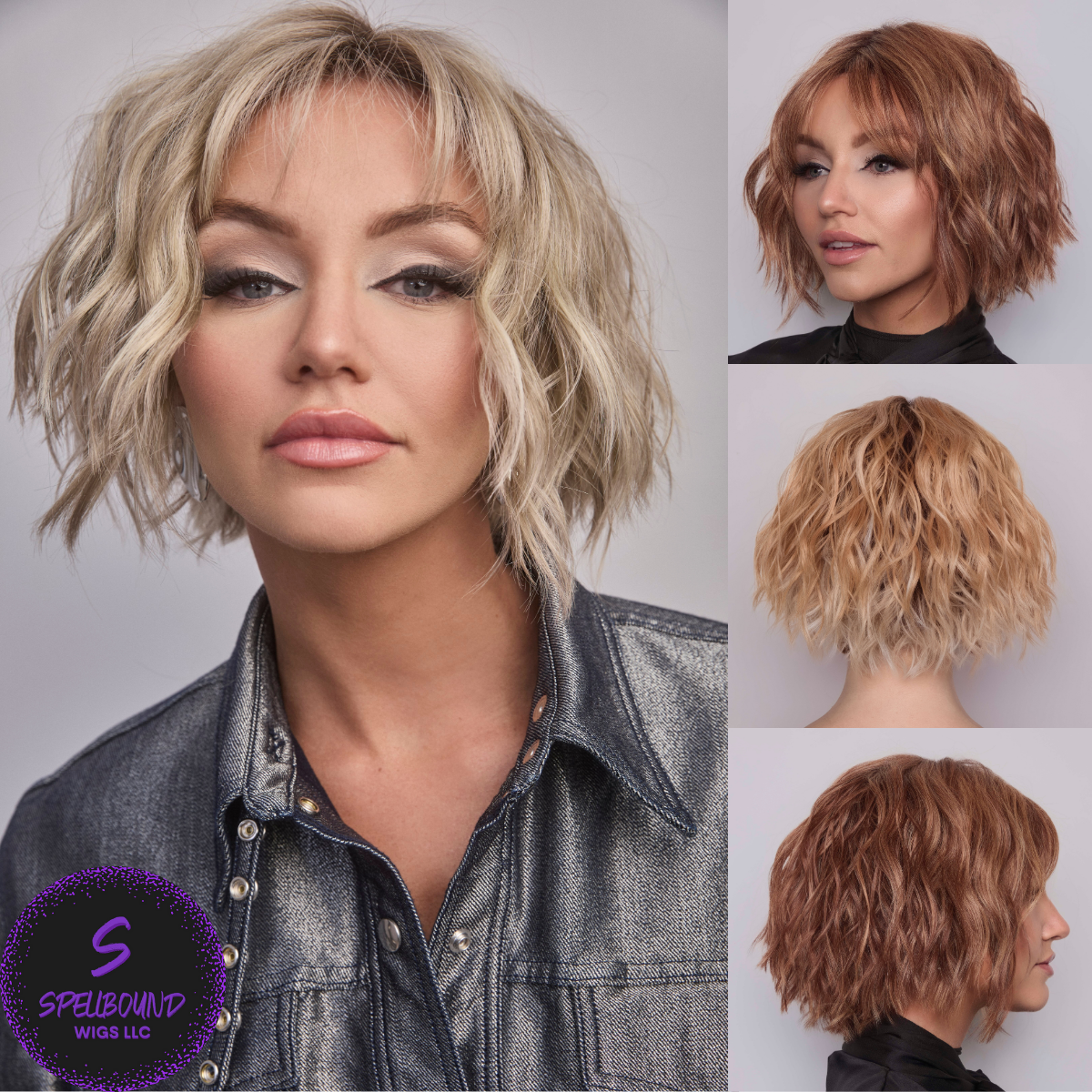 Say hello to Rosanna from Rene of Paris¡¯ Alexander Couture Collection! This short bob wig rocks carefree beach waves and soft bangs for a fun, trendy vibe. Made with heat-friendly synthetic fiber, it¡¯s ready for you to style however you like. The cap features an extended lace front and a soft lace part for extra comfort, plus adjustable tabs at the nape to keep your fit snug and secure all day long.