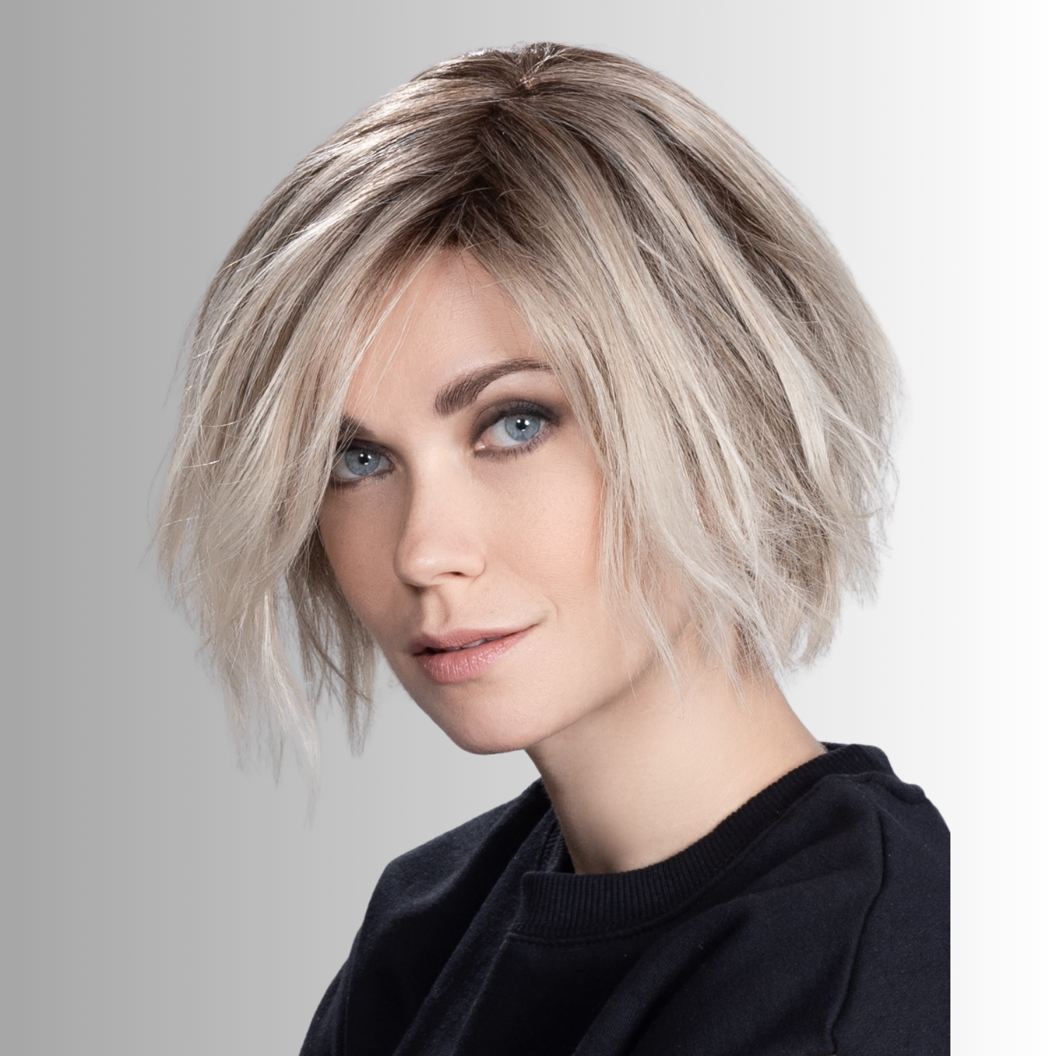The Scala wig by Ellen Wille is a chic and modern wig made from heat-friendly synthetic fiber that can be styled with heat tools to achieve a variety of looks. It features short, relaxed waves in a classic bob style that creates a youthful and trendy look. The wig boasts a range of great color options, so you can choose the perfect shade to complement your skin tone and personal style. From bold and vibrant hues to more natural shades, there is a color option for everyone. The Scala wig also features an extended lace front that creates a natural-looking hairline and allows for comfortable wearing throughout the day. The mono part at the crown of the wig creates the illusion of natural hair growth, adding to the overall realistic appearance of the wig.?