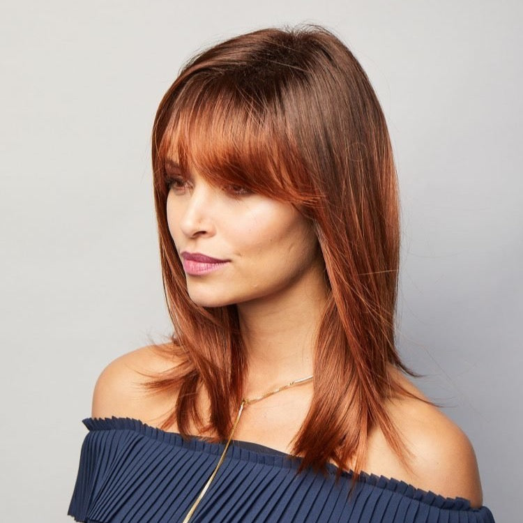 Seville from our Noriko Collection is a mid-length synthetic wig. This straight ready-to-wear wig is classic style featuring a subtle A-Line perimeter and square layers with full wispy bangs. This wig flatters women of all ages. Not only can you wear this wig straight if you want to change your look you can style the wig into a low ponytail. Seville is machine made with adjustable tabs in the back nape area to allow a more comfortable fit. The result is a comfortable fit with a natural look that is both fashionable and easy to wear.